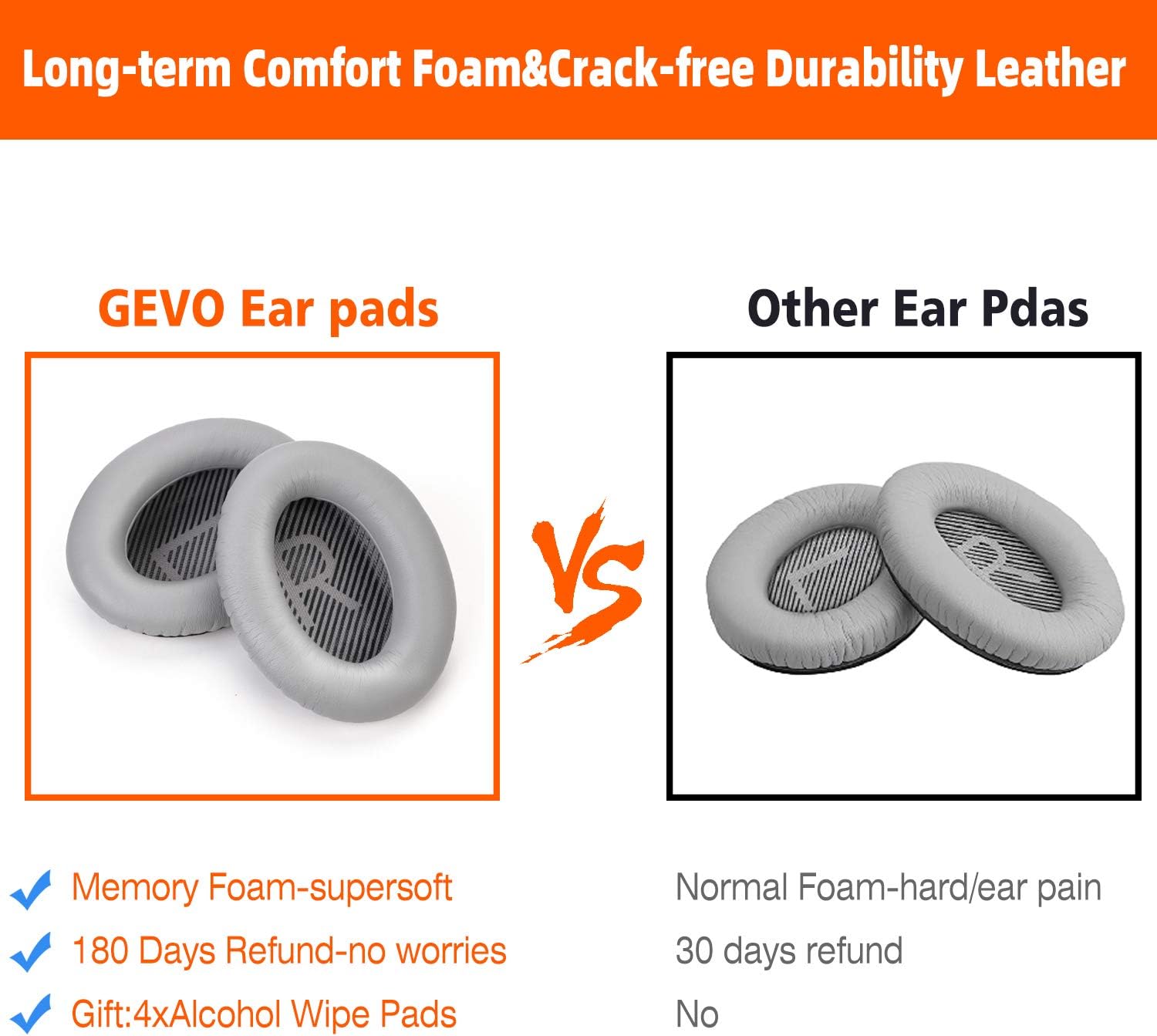 - 【Ultimate Comfort & Long Use】GEVO Replacement Ear pads for Bose headphones are made of superior PU leather, skin-friendly feather-like soft comfortable, breathable and absorbable, build to last.Internal super soft memory foam padding, durable & flexible, provide the MAXIMUM EAR COMFORT for all day of comfortable listening, even forget that you are still wearing headphones!
