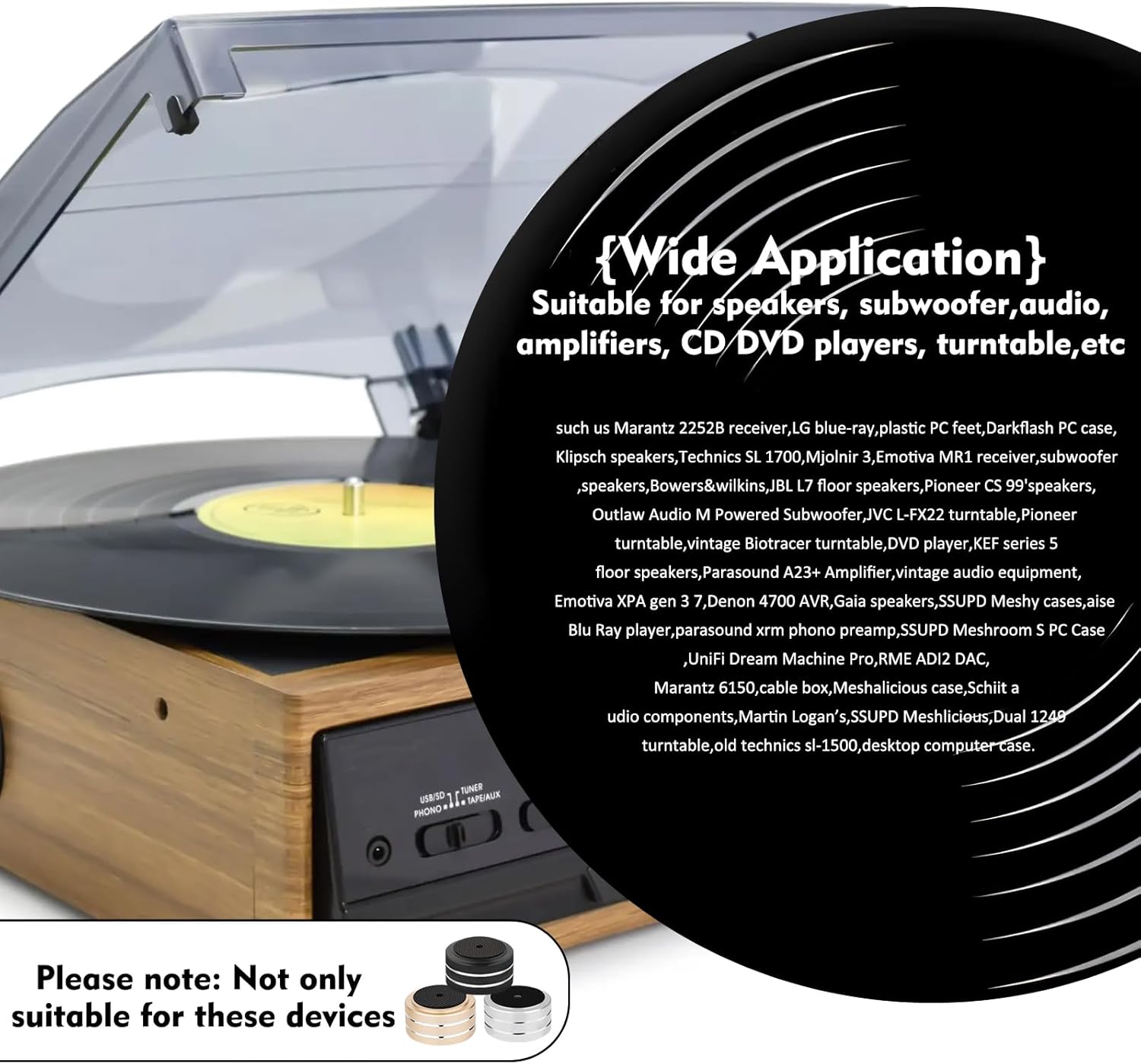 - 【Applicable objects】Subwoofer feet,audio equipment feet,amplifier feet,speaker feet,turntable isolation feet pads,CD/DAC/DVD players,amplifier feet,isolating speakers,subwoofer isolation feet,pc case feet,audio isolation feet and Other Audio Equipment.