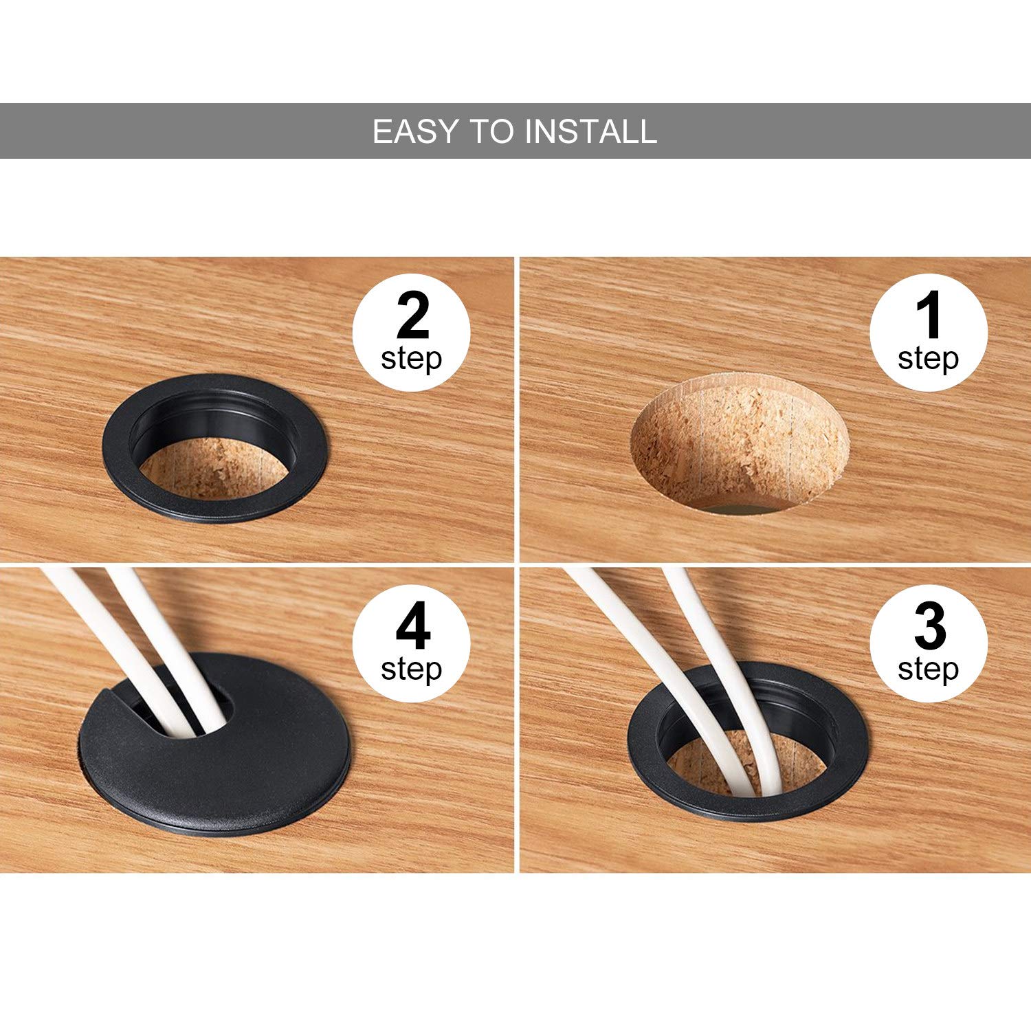 - 【Easy to Install】These 2” wire grommet cord will snap directly into a recessed 2inch (50mm) hole in your desk; just simply trace the body of the grommet onto your desk, table, or workstation, drill the hole, place the grommet inside the hole, and start concealing all cables, cords and wires