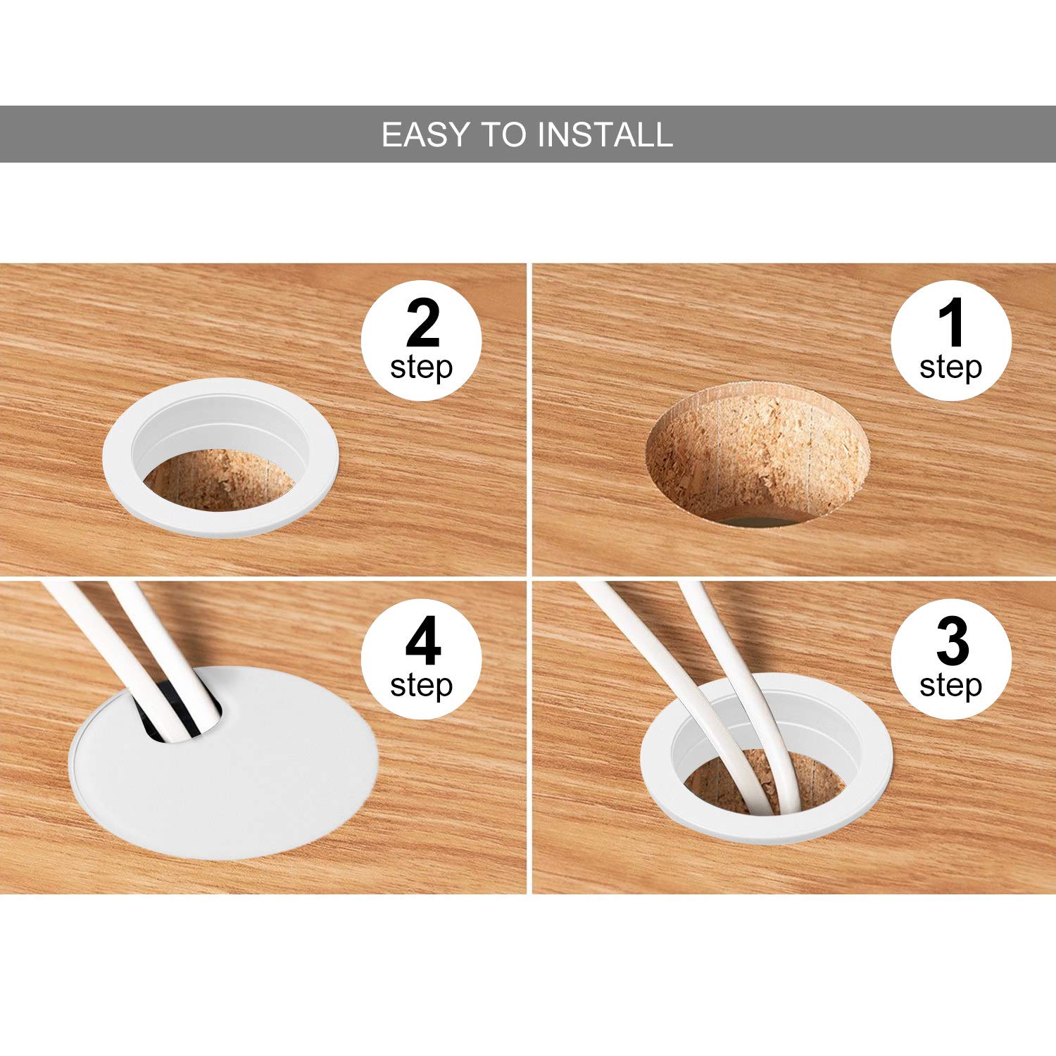 - WIDE APPLICAITON: Perfect way to keep your work surfaces tidy and uncluttered. White Desk Cable Wire Grommet Cord suitable for computer desks, office equipment, PC peripheral, entertainment systems in office, home and school