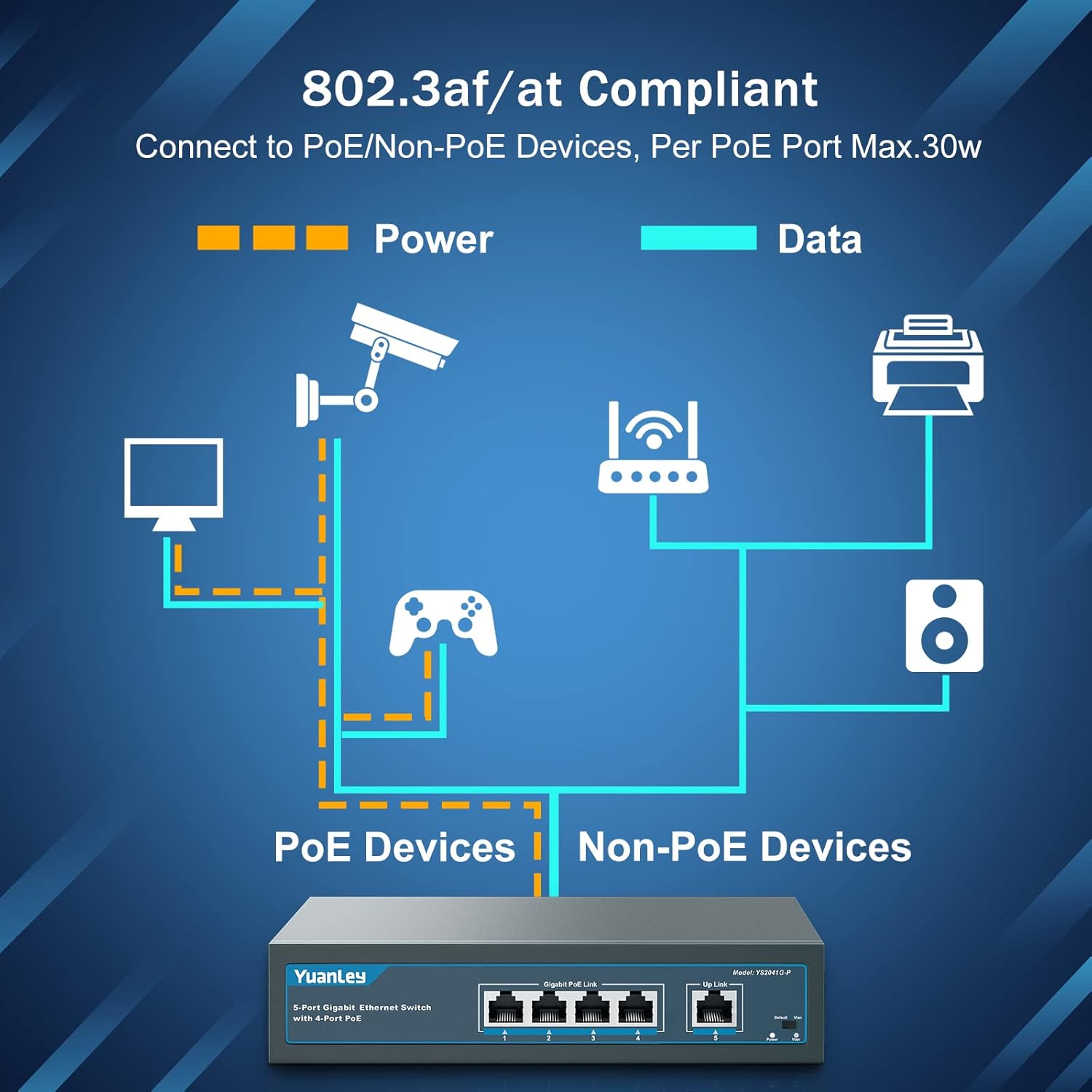 - [78W High PoE Power] Support IEEE 802.3af/at PoE power supply. The whole power is 78W, up to 30W per port. Suitable for poe power supply for multiple devices.