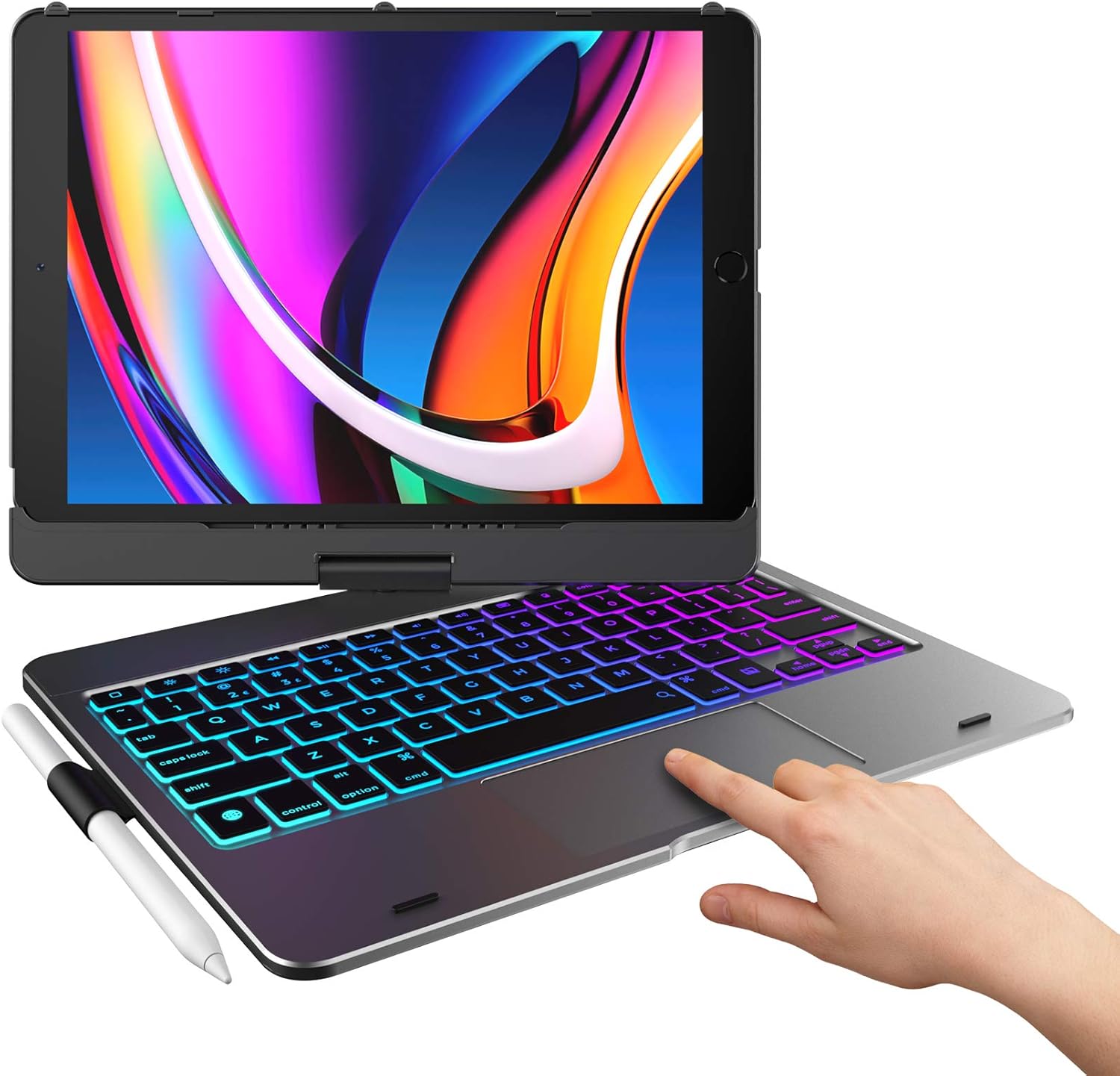 typecase Touch iPad 9th Generation Case with Keyboard (10.2", 2021), Multi-Touch Trackpad, 10 Color Backlight, 360° Rotatable, Thin & Light for iPad 8th Gen, 7th Gen, Air 3, Pro 10.5 (Space Gray)