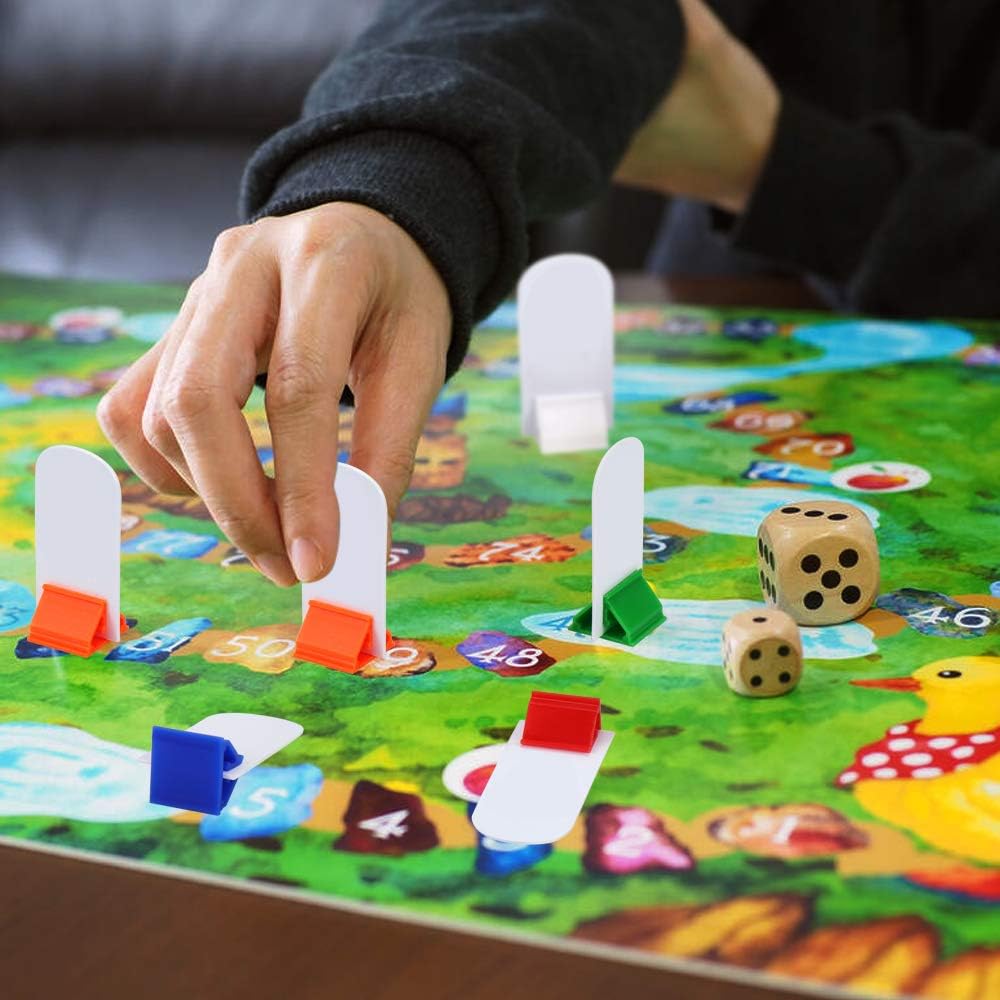 - 【Board Game Set Size】: The white cards size is 1" x 2" rectangle, 1.5mm thick; Game pieces card stands measure 1/2" high on a 3/4" x 3/4" square base. Stands offer a firm holds of the cards