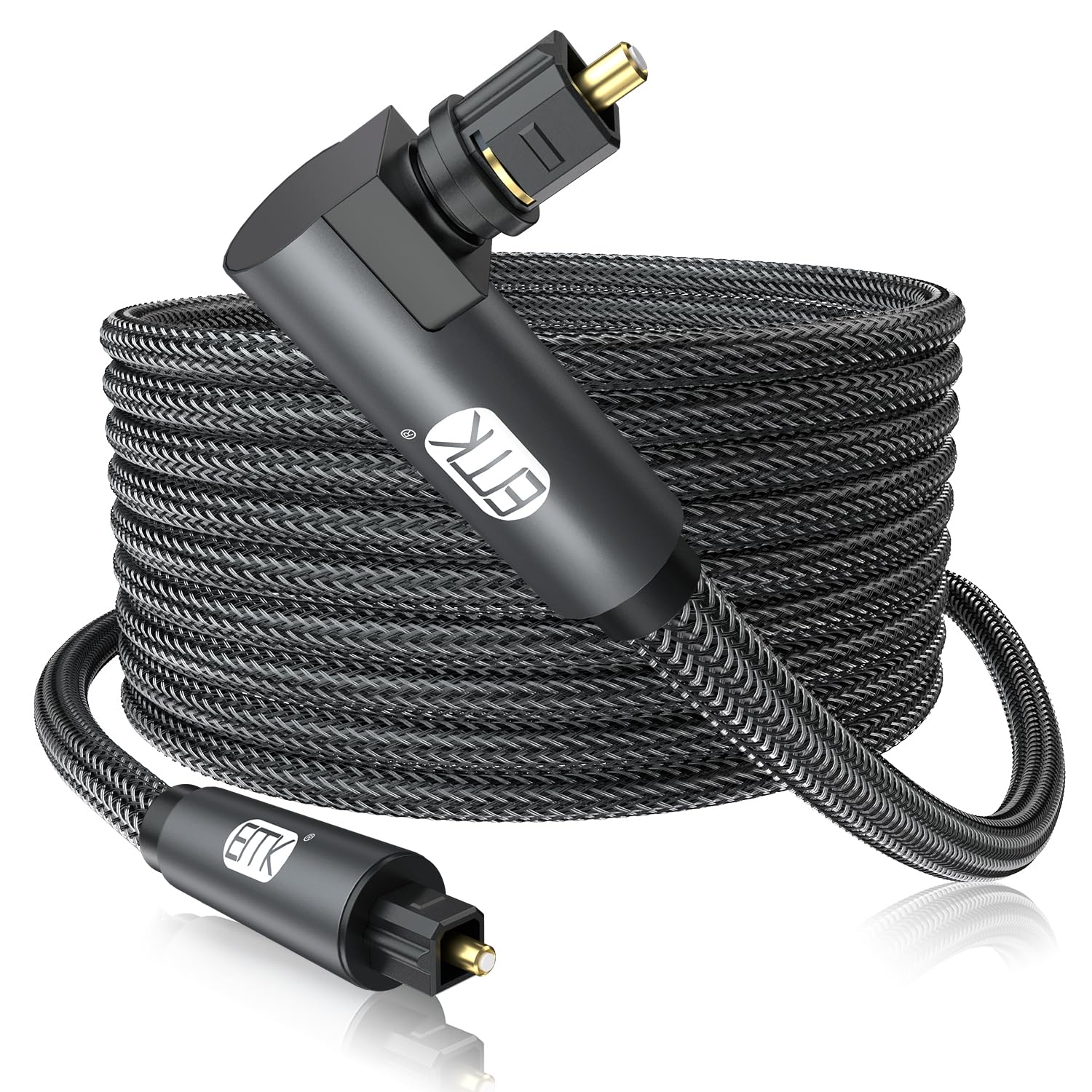 EMK 90 Degree Toslink Optical Cable 360 Degree Free-Rotating Plug Fiber Optic Cable S/PDIF Toslink Male to Male for Home Theater, Sound Bar, TV, PS4, Xbox,Grey (16ft/5m)