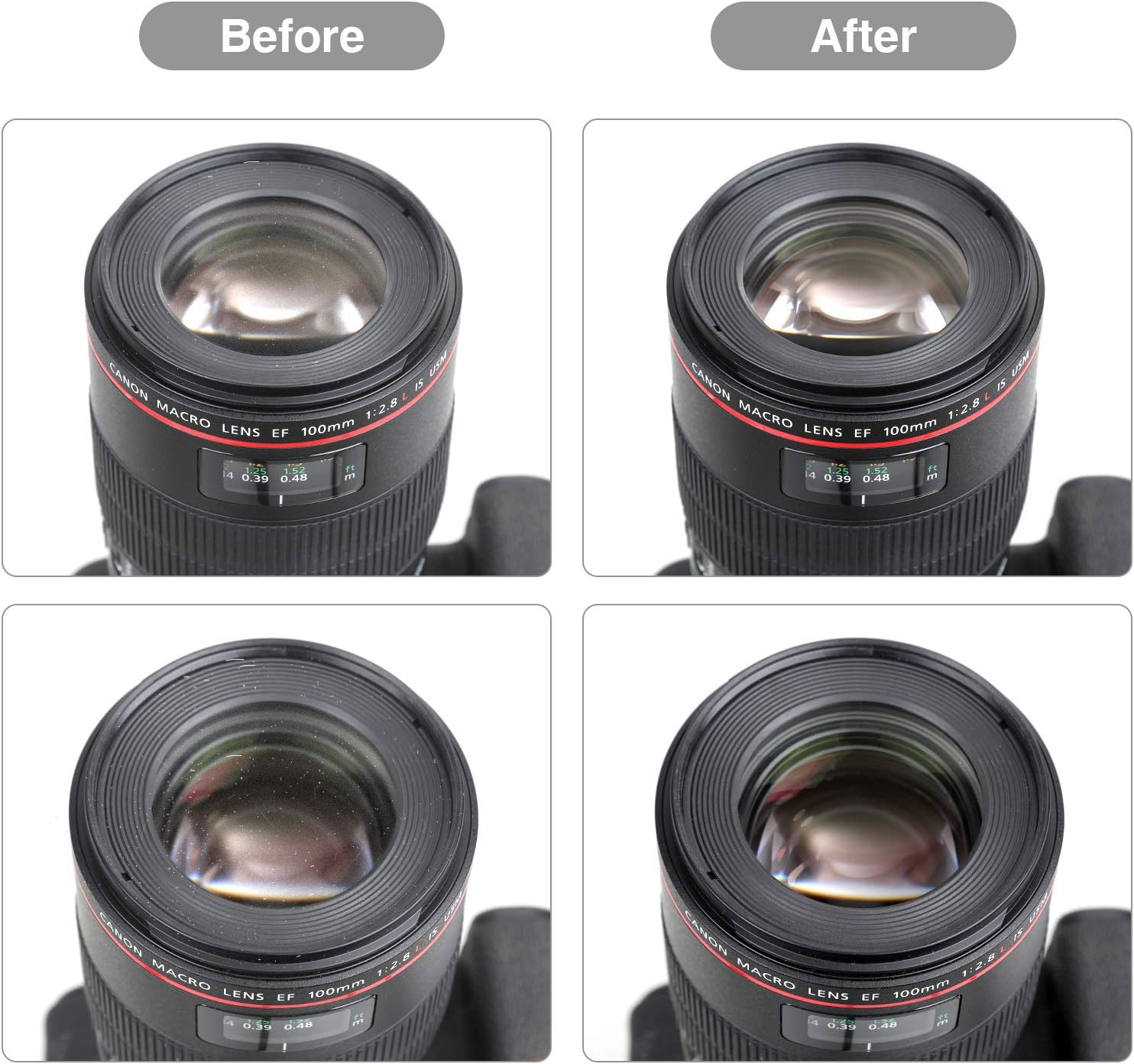 - Zero Scratches, Efficient Cleaning: Extremely fine Microfiber can easily clean the invisible dust, particles and smudges on Cameras and Lens, leaves zero scratches, streaks or marks. Non-Toxic Alcohol-Free Formula Cleaner Kits also leave zero scratches, streaks or marks after use. Changing the cleaning kit can efficiently and safely clean the dirt on the camera and lens. 2 in 1 lens brush, cleaning brush