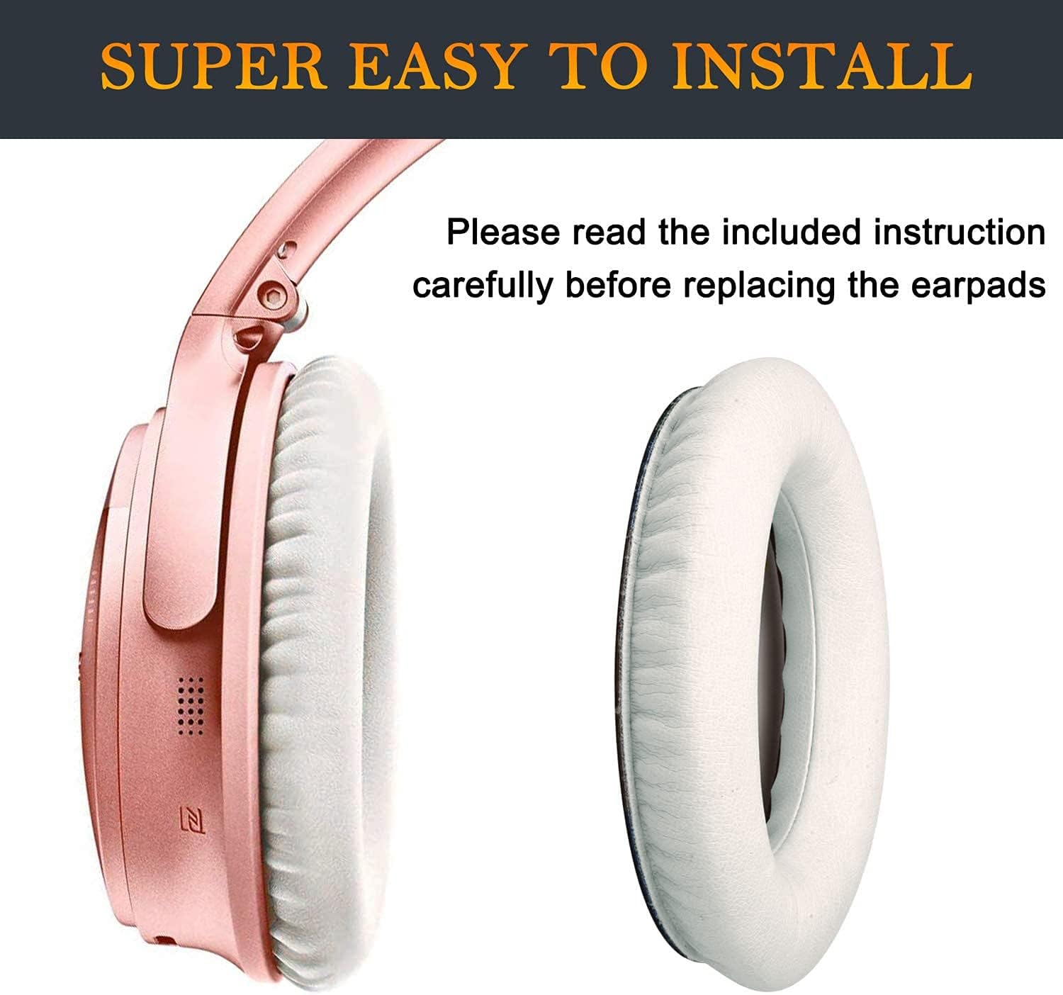 SoloWIT Replacement Earpads Cushions for Bose QuietComfort 35 (QC35) & Quiet Comfort 35 II (QC35 ii) Headphones, Ear Pads with Softer Leather, Noise Isolation Foam, Added Thickness (White)