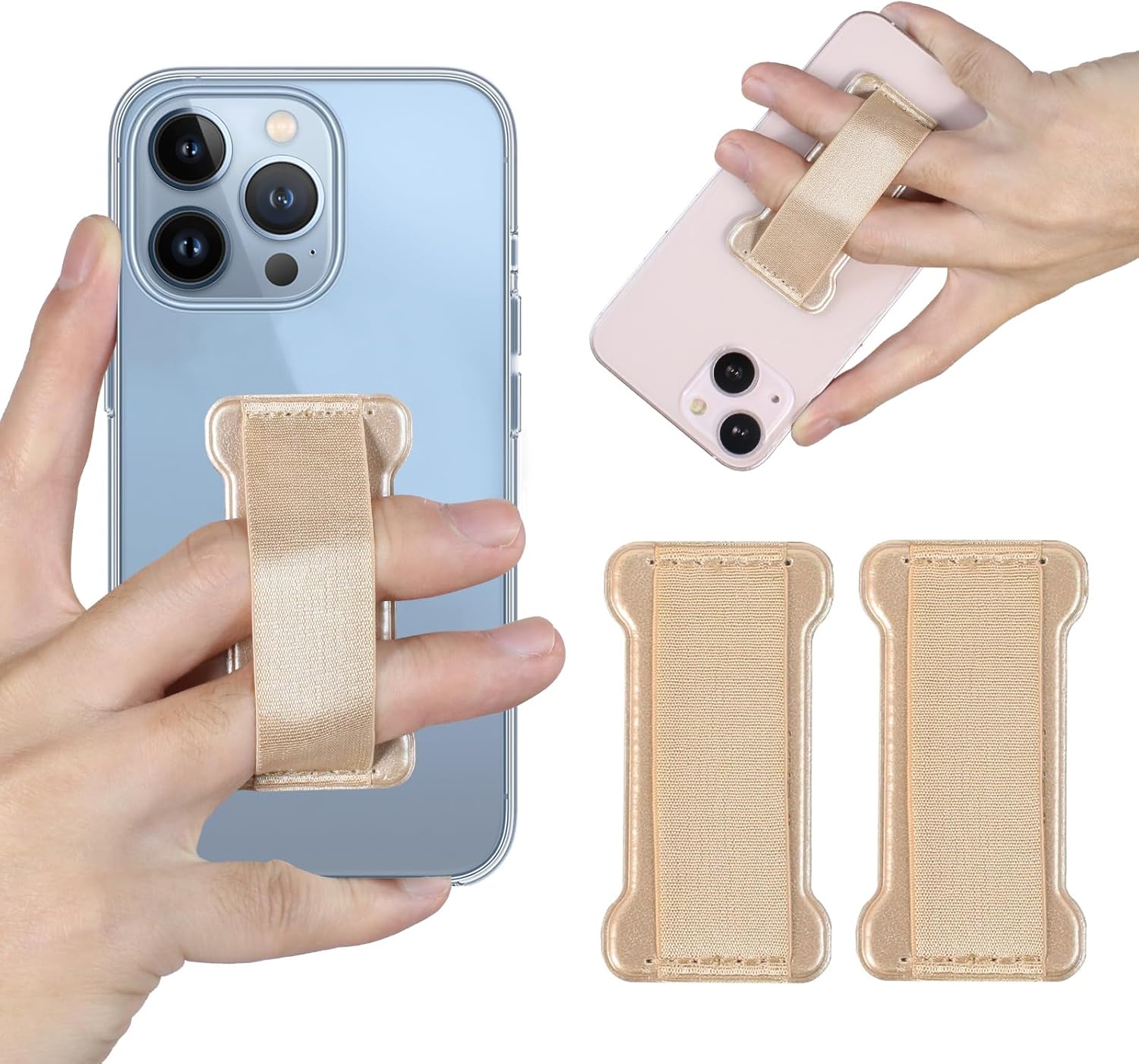 Phone Grip Holder for Hand, Universal Finger Strap Phone Holder, Finger Selfie Grip Compatible with Most Smartphones (Gold) - 2Pack