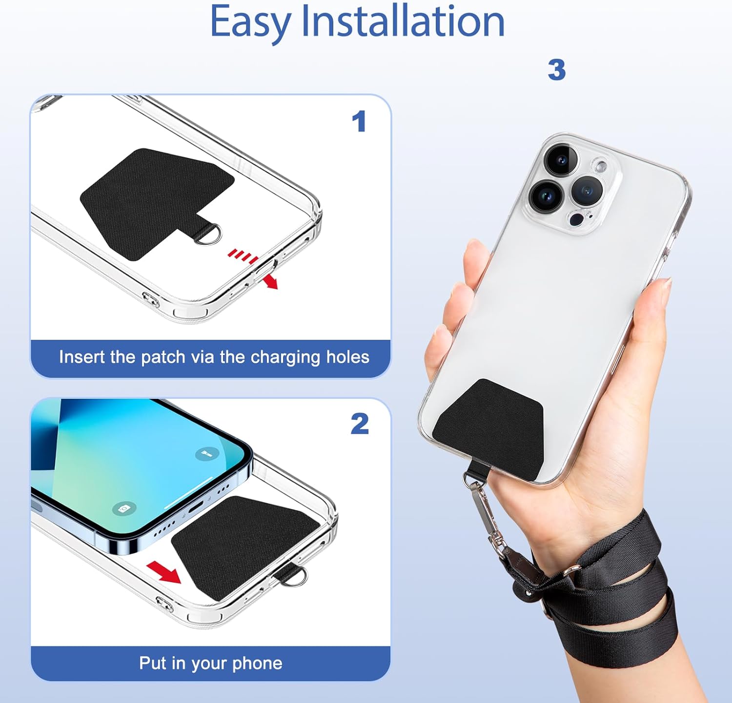 - EASY INSTALLATION: Ultra-thin phone anchor fits between your phone and phone case and connect to the lanyard through the charging port of your phone case