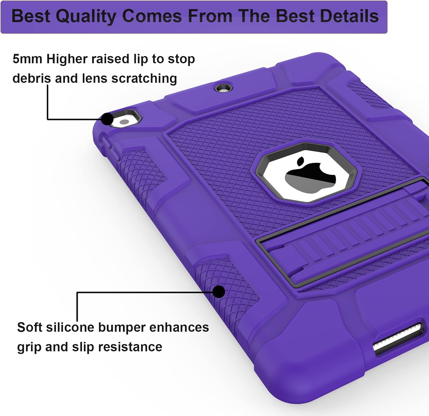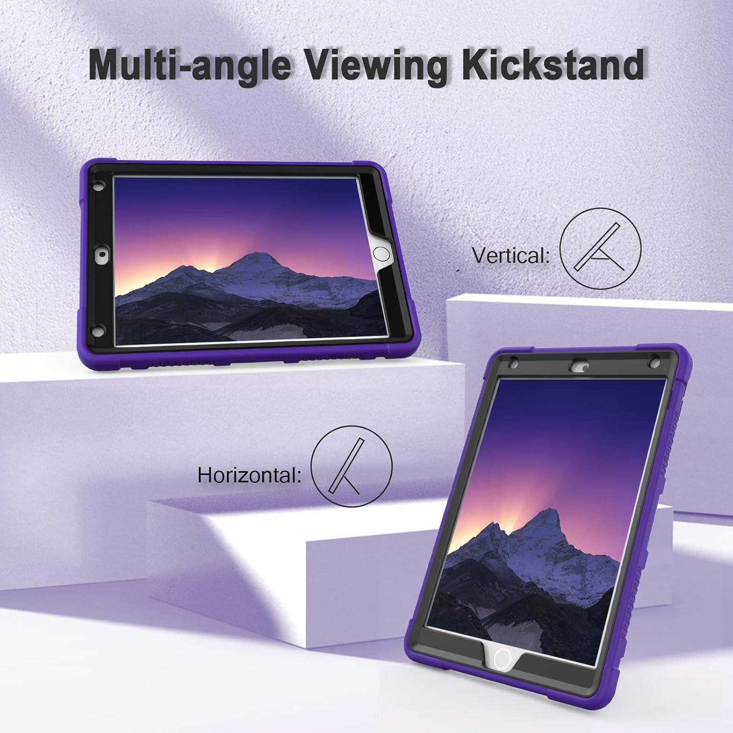 Rantice iPad 9th Generation Case, iPad 8th Generation Case, iPad 7th Generation Case, Hybrid Shockproof Rugged Drop Protection Cover with Kickstand for iPad 10.2'' Purple+Black