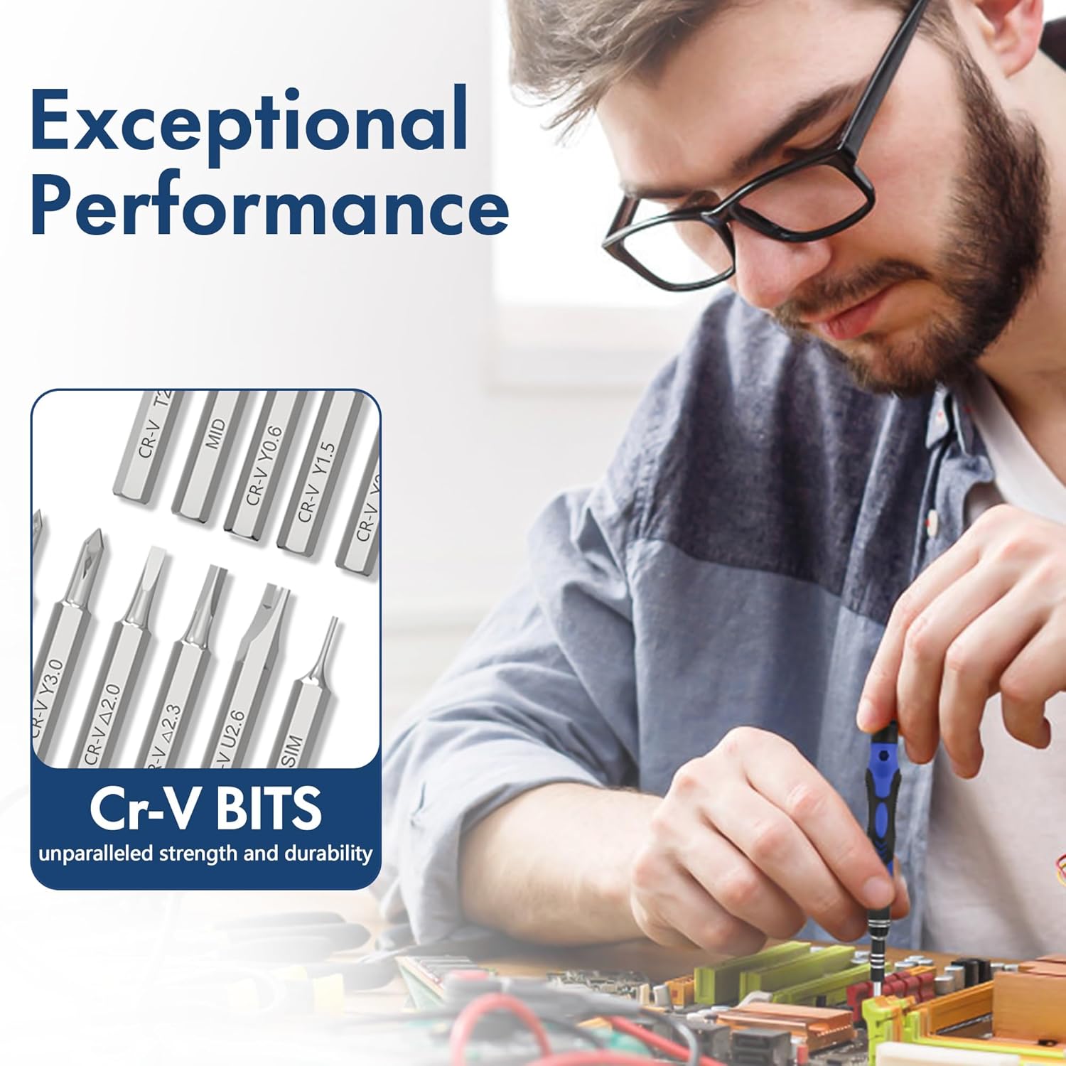 - 【Multi-function】XOOL 62 in 1 electronics repair tool kit professional includes 58 screwdriver bits (Phillips, Flathead, Torx, Torx Security, Pentalobe screwdriver and more), Screwdriver Handle, Flexible Shaft Extension Rod, Solid Shaft Extension Rod, 1/4-4mm Driver Adapter.