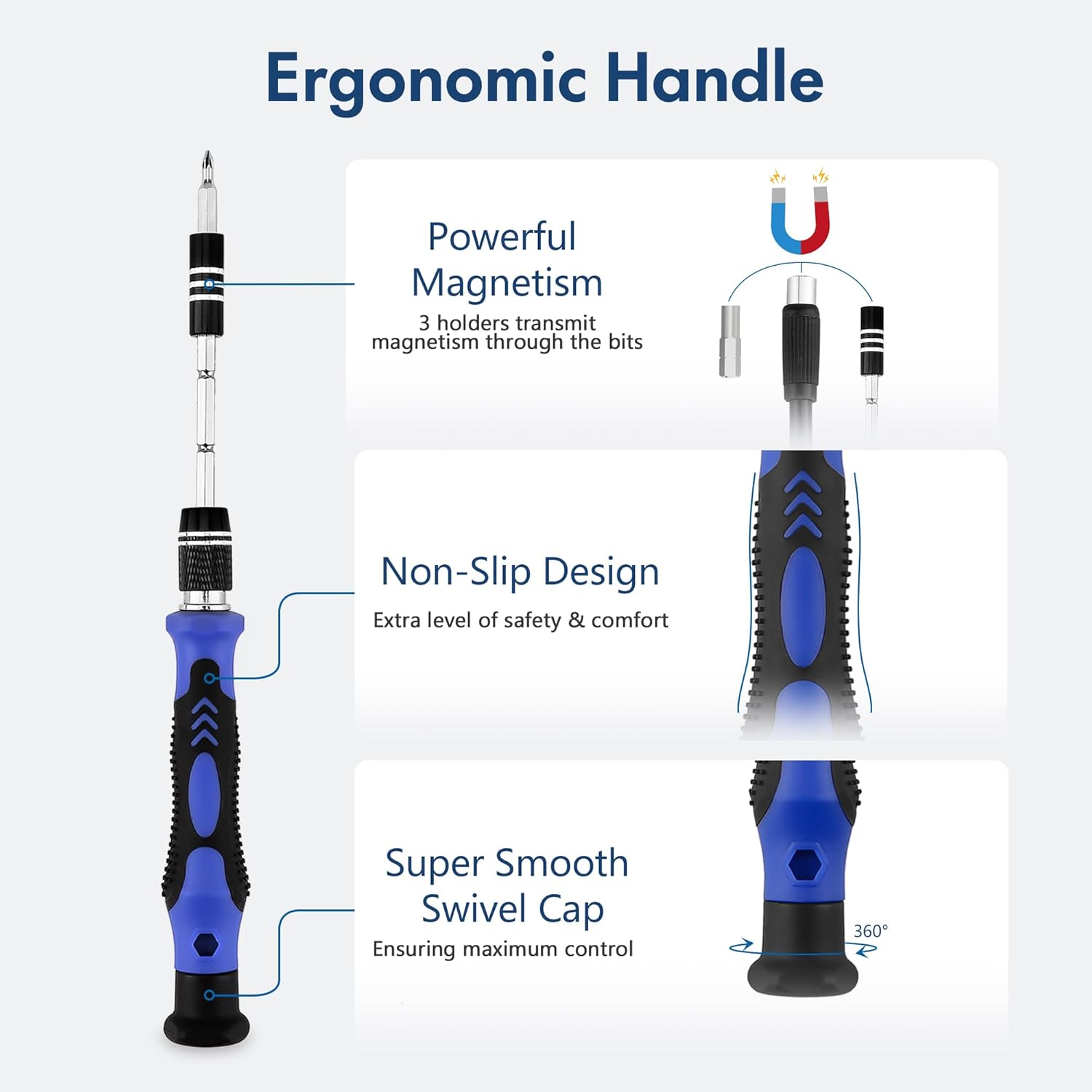 - 【Humanized Design】Ergonomic and press & push design handle, it is comfortable to hold even for the long-time use. Flexible Shaft Extension Rod and Solid Shaft Extension Rod with STRONG magnetic tips makes it easy to fix bit and pull screws out, a flexible shaft included is perfect for electronics where the shaft is hard to get, ideal for stereo work.