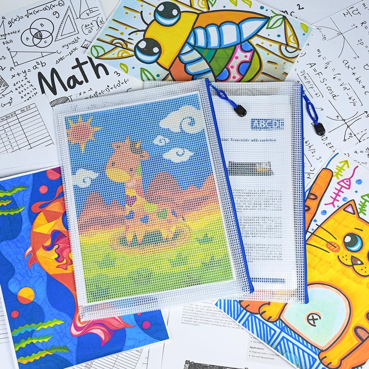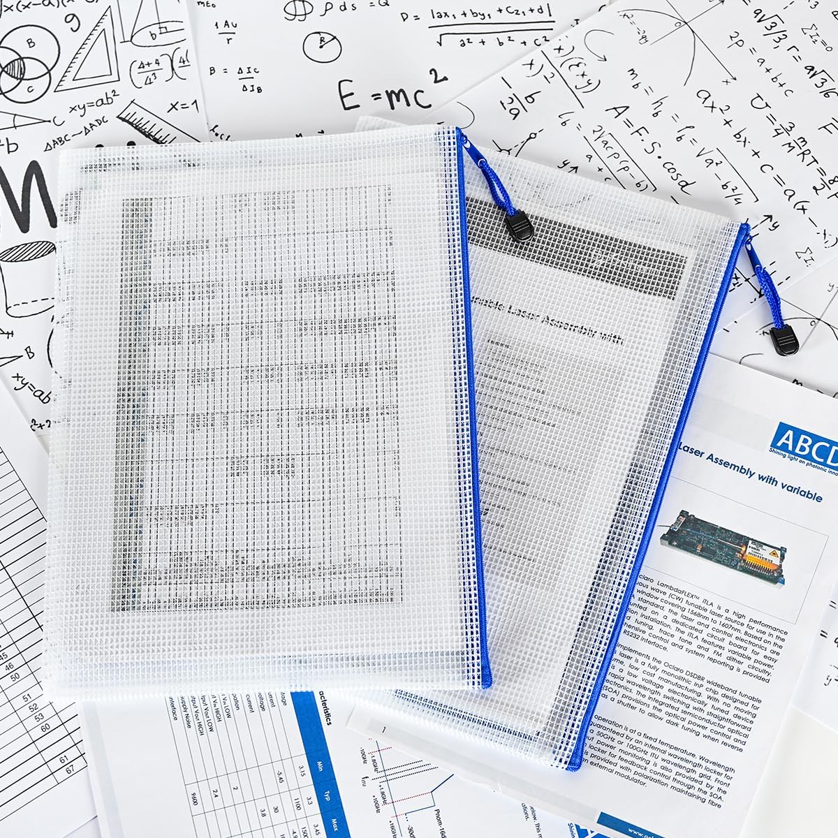 AUSTARK 20 Pcs Zipper File Bags, Plastic Mesh Pouch, Board Game Storage Bag, Waterproof Bags for Office School (A4 Size 13.4''x9.4'', White and Blue)