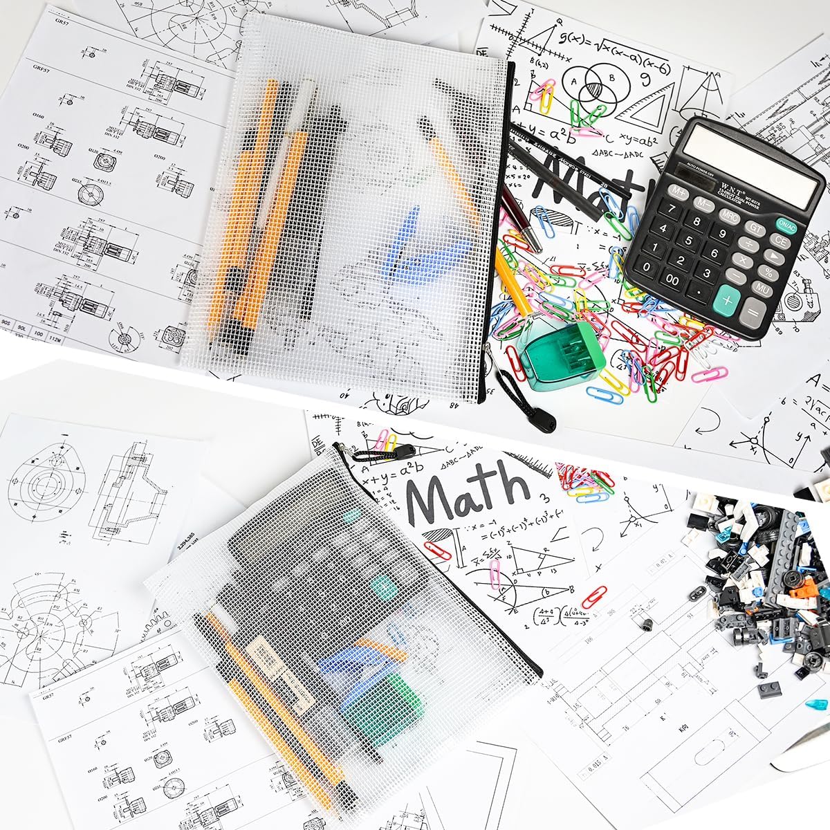 AUSTARK 20 Pcs Zipper File Bags, Plastic Mesh Pouch, Board Game Storage Bag, Waterproof Bags for Office School (B5 Size 11.4''x8.2'', White and Black)