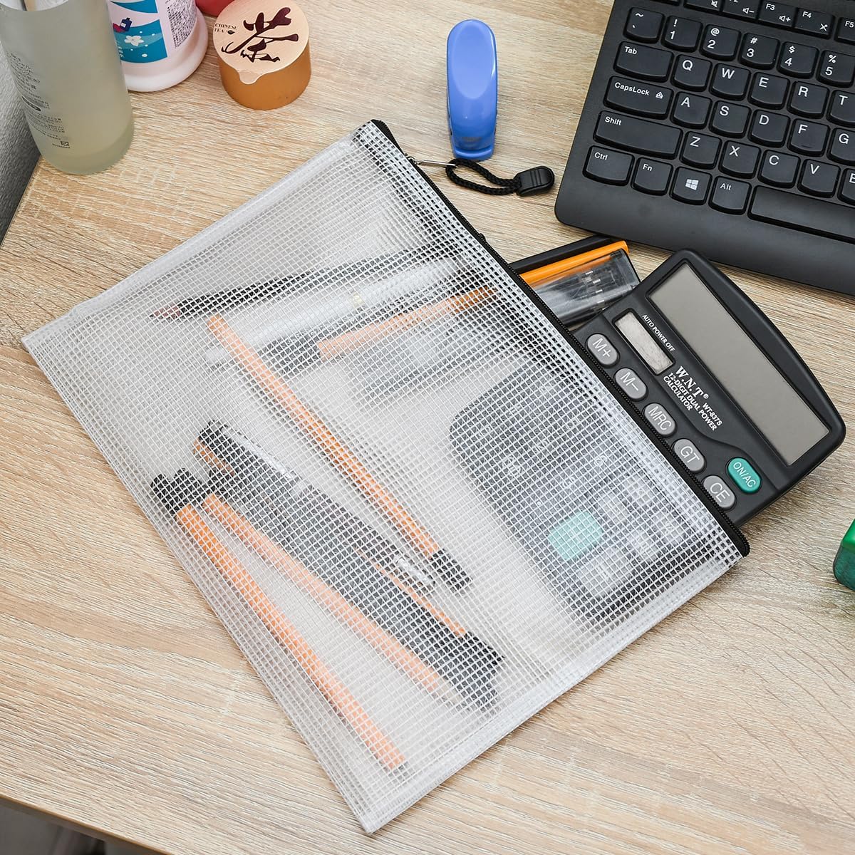 - Mesh pouches with translucent design. A solid PVC grid layout with moderate transparency could distinguish things in it easily, also protect your privacy at the same time