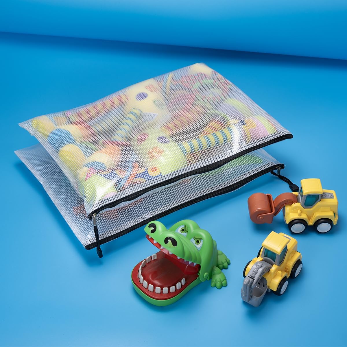 - Mesh pouches with translucent design. A solid PVC grid layout with moderate transparency could distinguish things in it easily, also protect your privacy at the same time