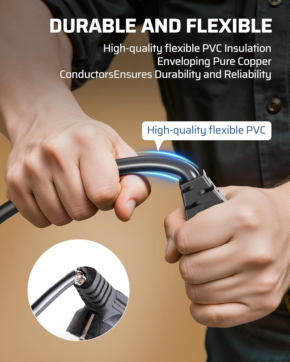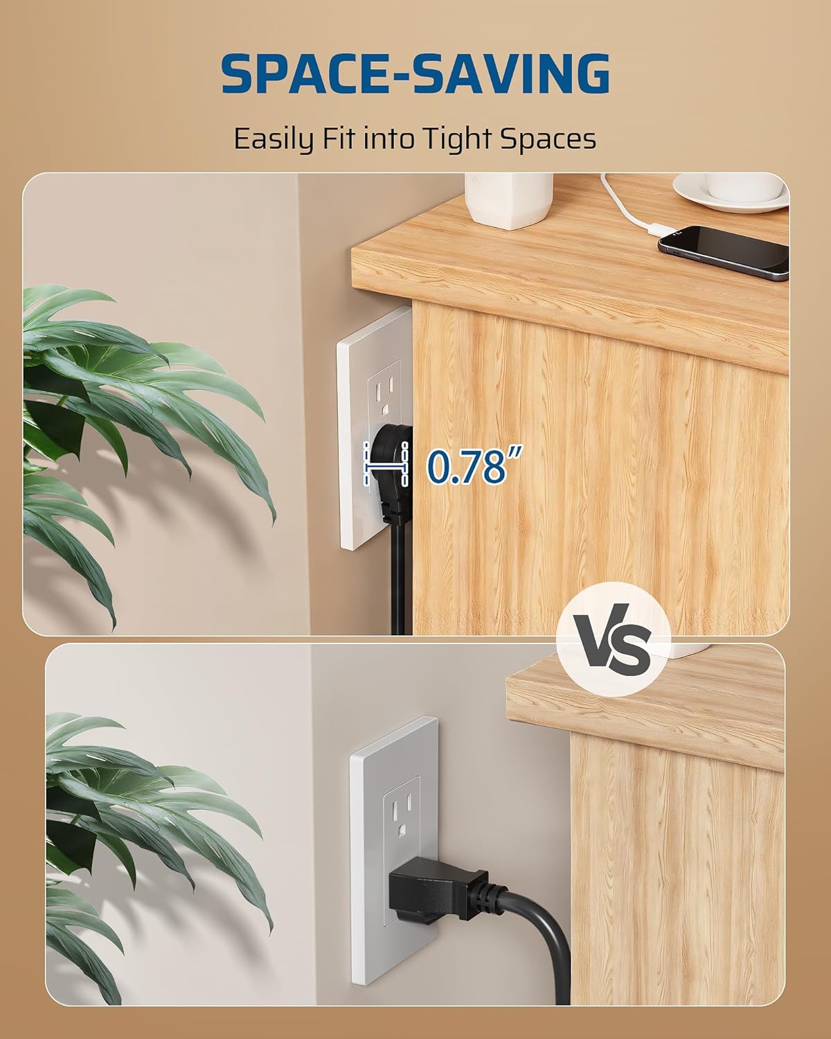- ANGLED FLAT PLUG - The low profile angled plug is great for plugging in the outlet without blocking the other one, perfect for creating a centralized hub for your electronics at your home, office, workshop or garage
