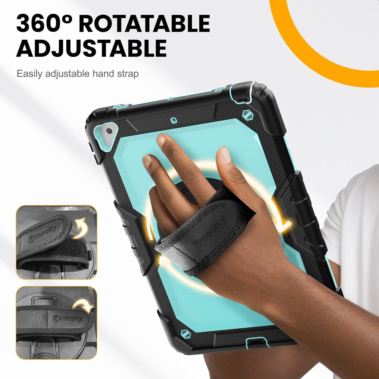 Timecity for iPad Air 3/ Pro 10.5 Inch Case, 360° Rotating Stand, Pencil Holder, Shockproof with Screen Protector & Shoulder Strap - Heavy Duty Protection Case for iPad Air 3rd Gen - Light Blue