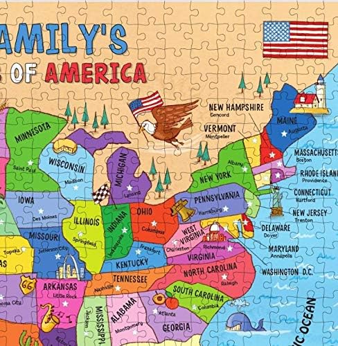 - A CUSTOM USA MAP PUZZLE FOR FAMILIES - Take a road trip across America with this 500-piece, custom jigsaw puzzle! Add the family's last name or up to 6 first names to be featured at the top.