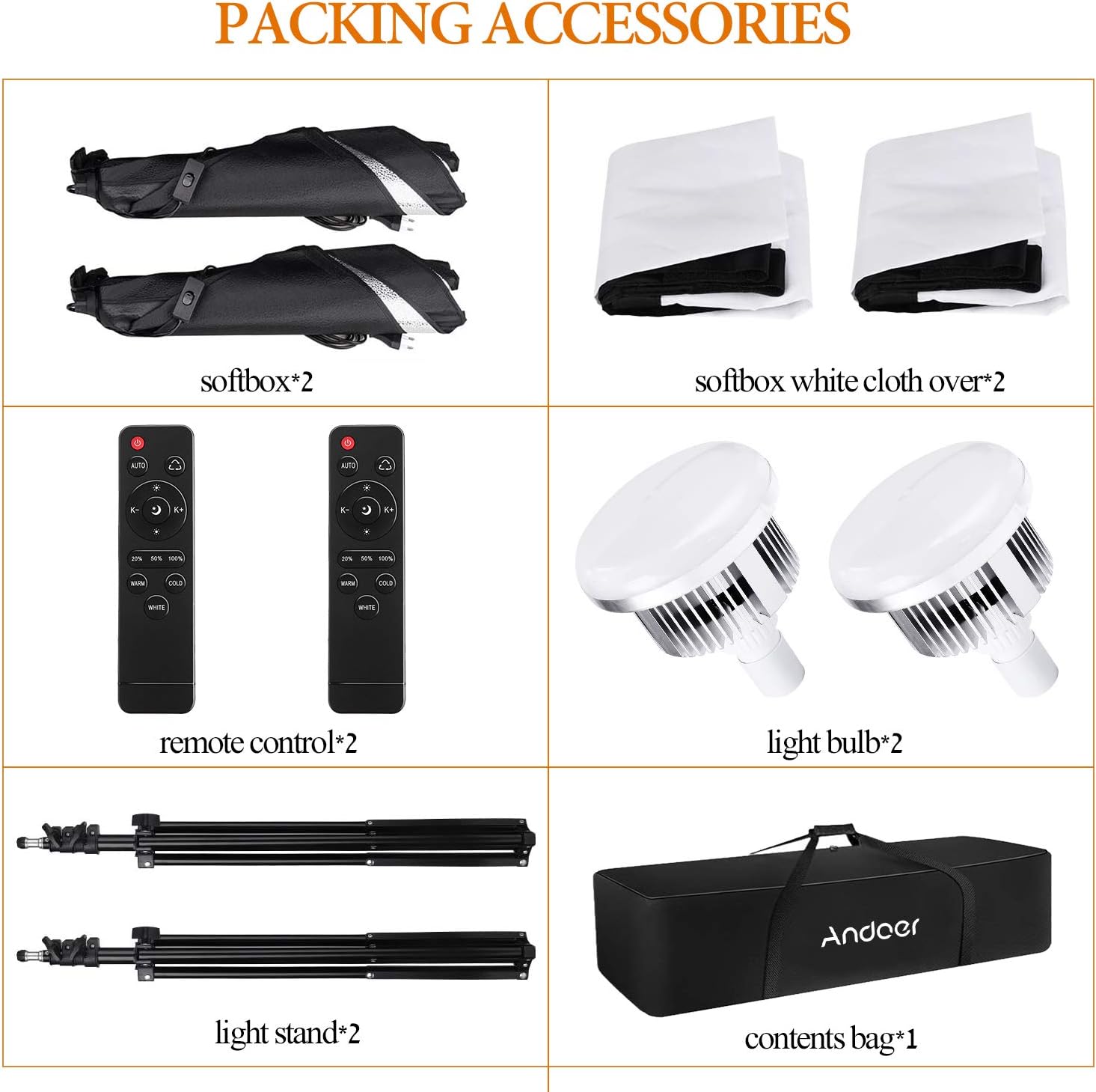 Andoer Studio Photography Light kit Softbox Lighting Set with 85W 2800K-5700K Bi-Color Temperature LED Light * 2 + 50x70cm Softbox * 2 + 2M Light Stand * 2 + Remote Control * 2 + Carry Bag * 1