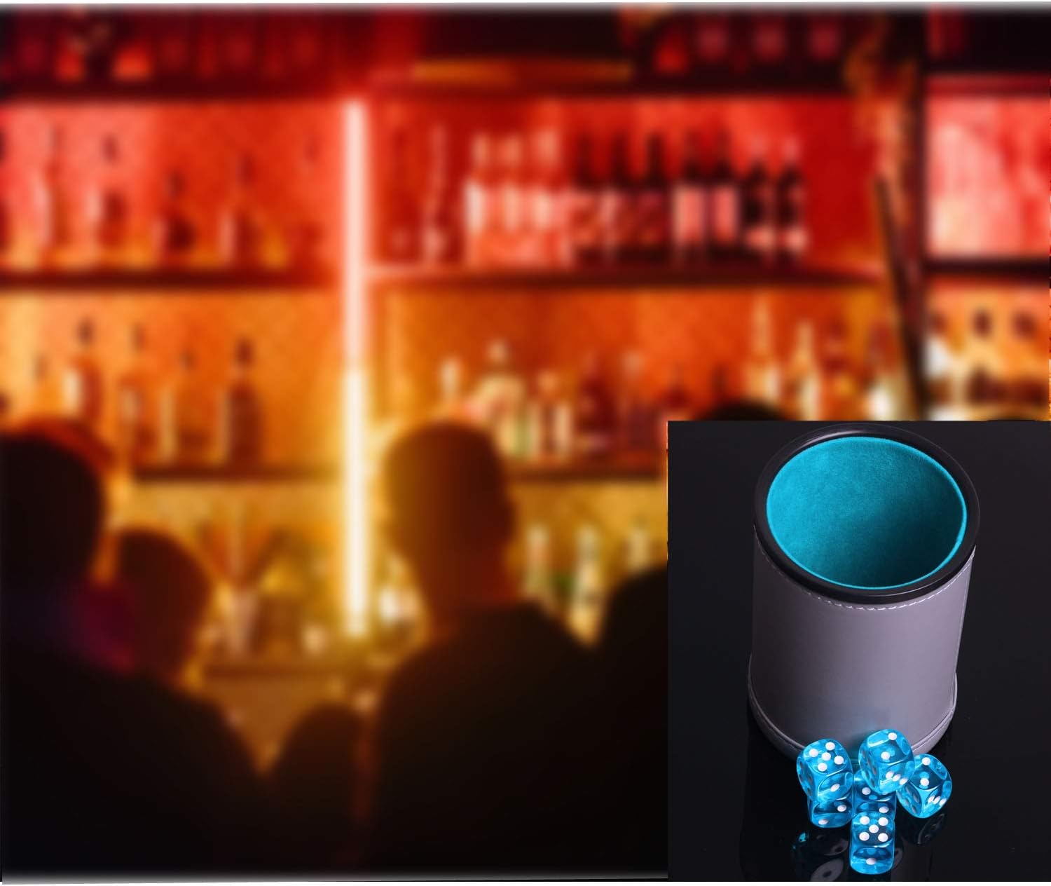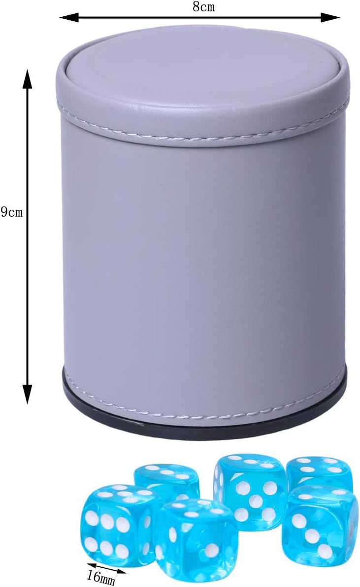 Dice Cup Set PU Leather and Felt-Lined, Quiet Shaking for Yahtzee Farkle Liars Dice Games, Includes Six 16mm Regular Dice