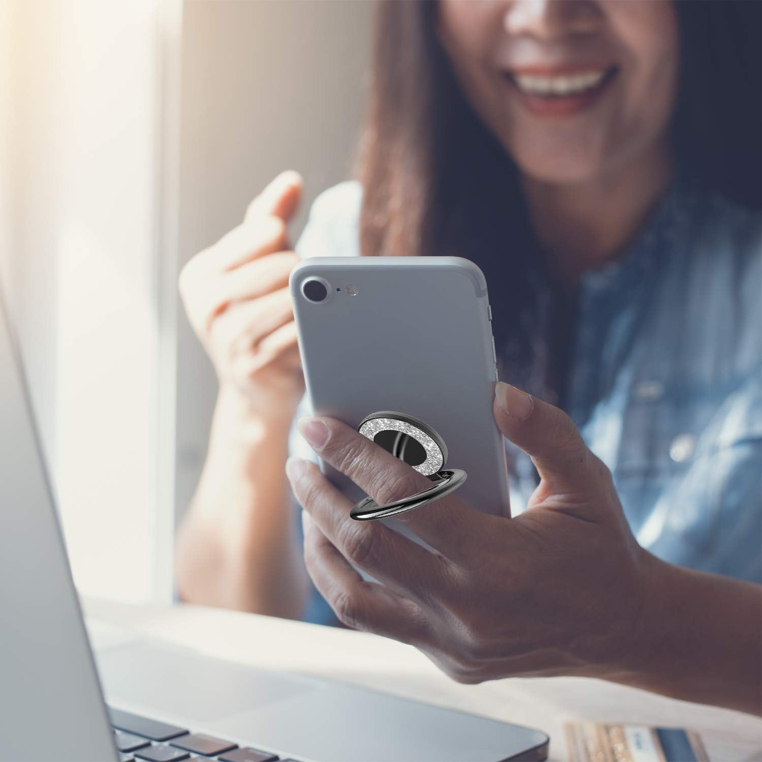 - Boasting an adjustable support angle, Pikabo Glitter phone ring holder ensures flexibility, as it can be conveniently rotated 360° and folded 180°, granting you the ability to find the best angle for your phone placement with ease.