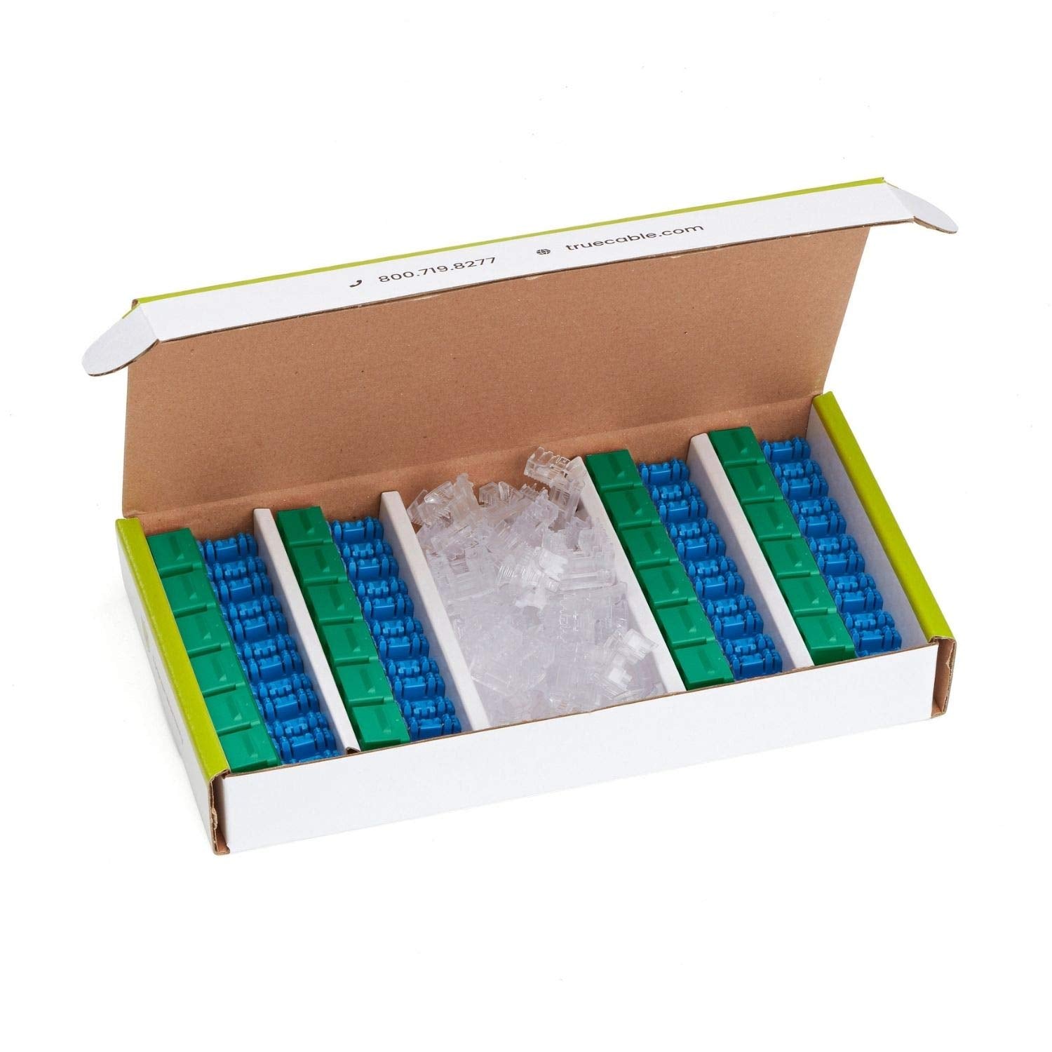 trueCABLE Cat5e Keystone Jack, Unshielded (UTP), 90 Degree Punch-Down, PoE++ (4PPoE) 100W, UL Listed, ETL Verified, ANSI/TIA Certified, Modular RJ45 Female, Green, 24 Pack