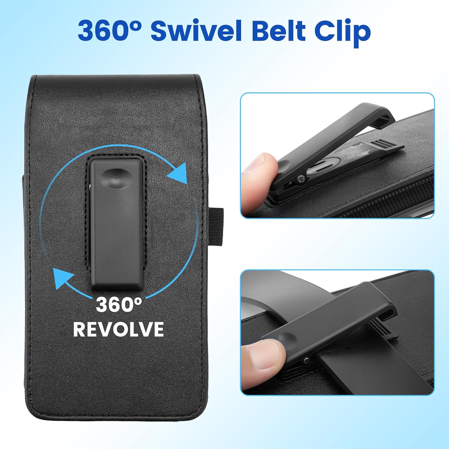 Mopaclle Vertical Phone Holster with Rotating Belt Clip, Compatible with iPhone 17 Pro, iPhone 16 15 14 13 12 Pro, Galaxy S25 S24 S23 S22 – Cell Phone Belt Holder for Men Women, Fits with Case On