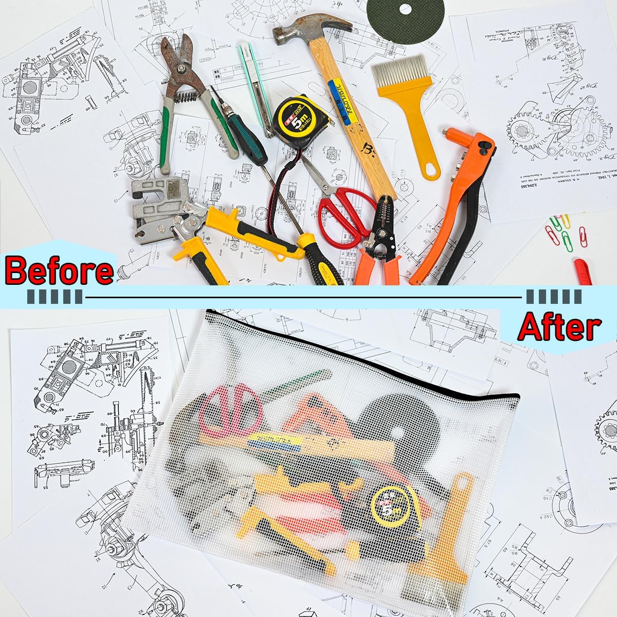 - 10 PCS Plastic mesh zipper bags, 16.9 x 12 inch A3 size. Widely used in office supplies, school, home daily life, hospital and travel. These pouches could meet your needs in all ways