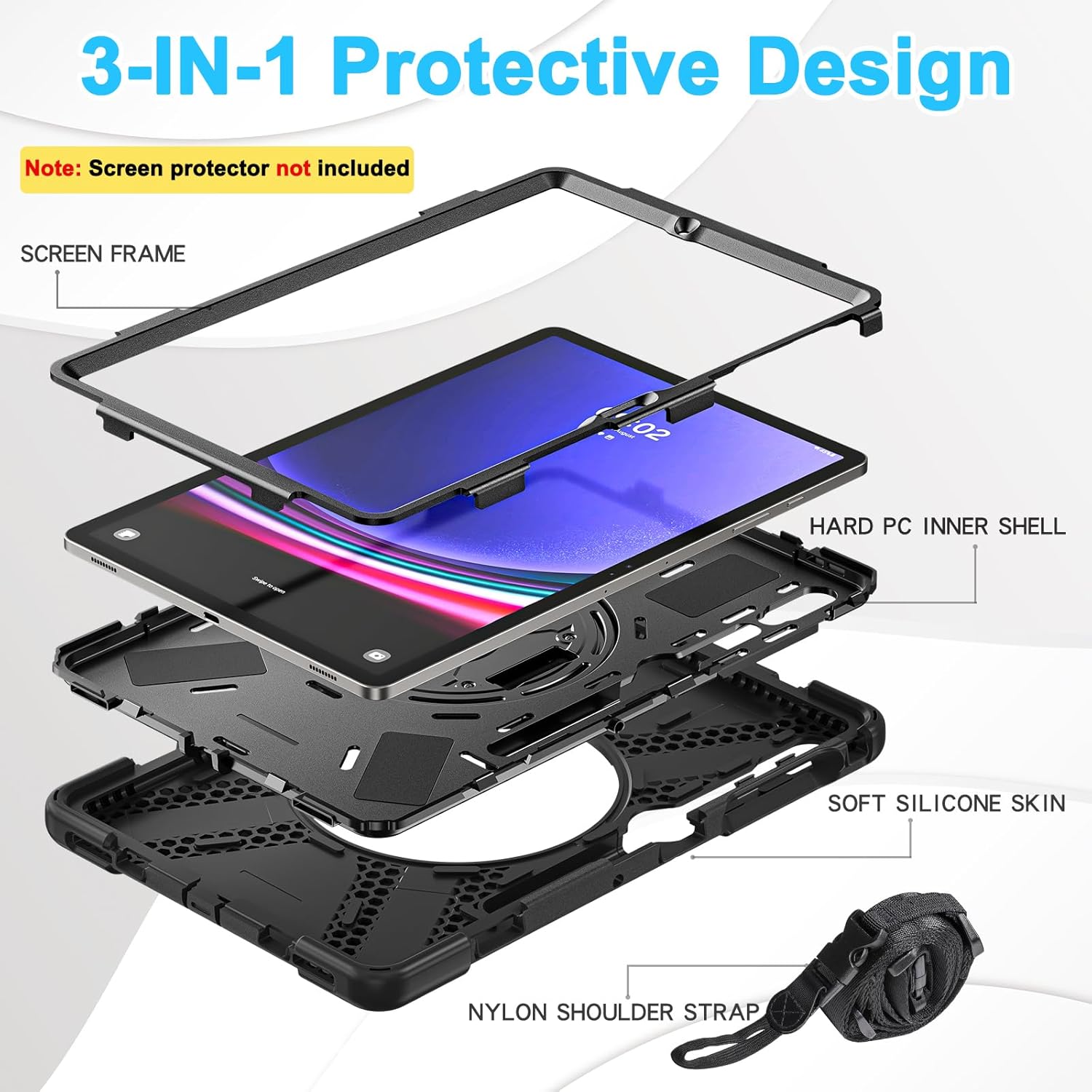 - 360 Rotating Stand and Hand Strap: The Galaxy Tab S10 Plus 2024/S9 Plus 12.4-inch Shockproof Case comes with 360 rotating stand on the back for multi-angle viewing and an adjustable strap that provides more flexibility and comfort when using the S10+/S9 FE+ Plus tablets at work, school, travel or play.