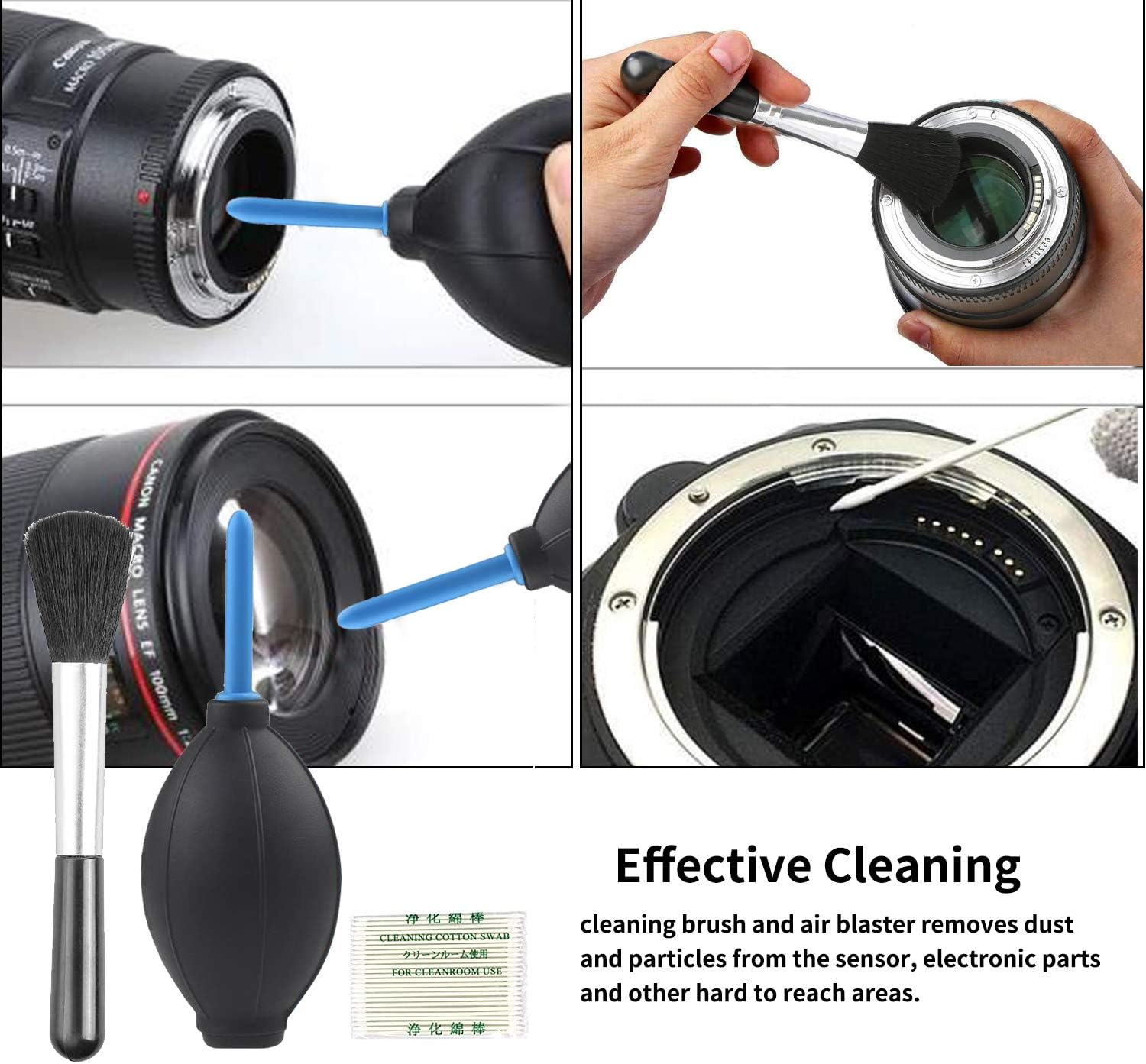- 【Double Sided Camera Cleaning Pen】: This tool has a dust brush on one side and a special non-liquid cleaning element on the other side which is designed to never dry out.Please note that a small amount of toner on the head of the cleaning pen is not dirty.
