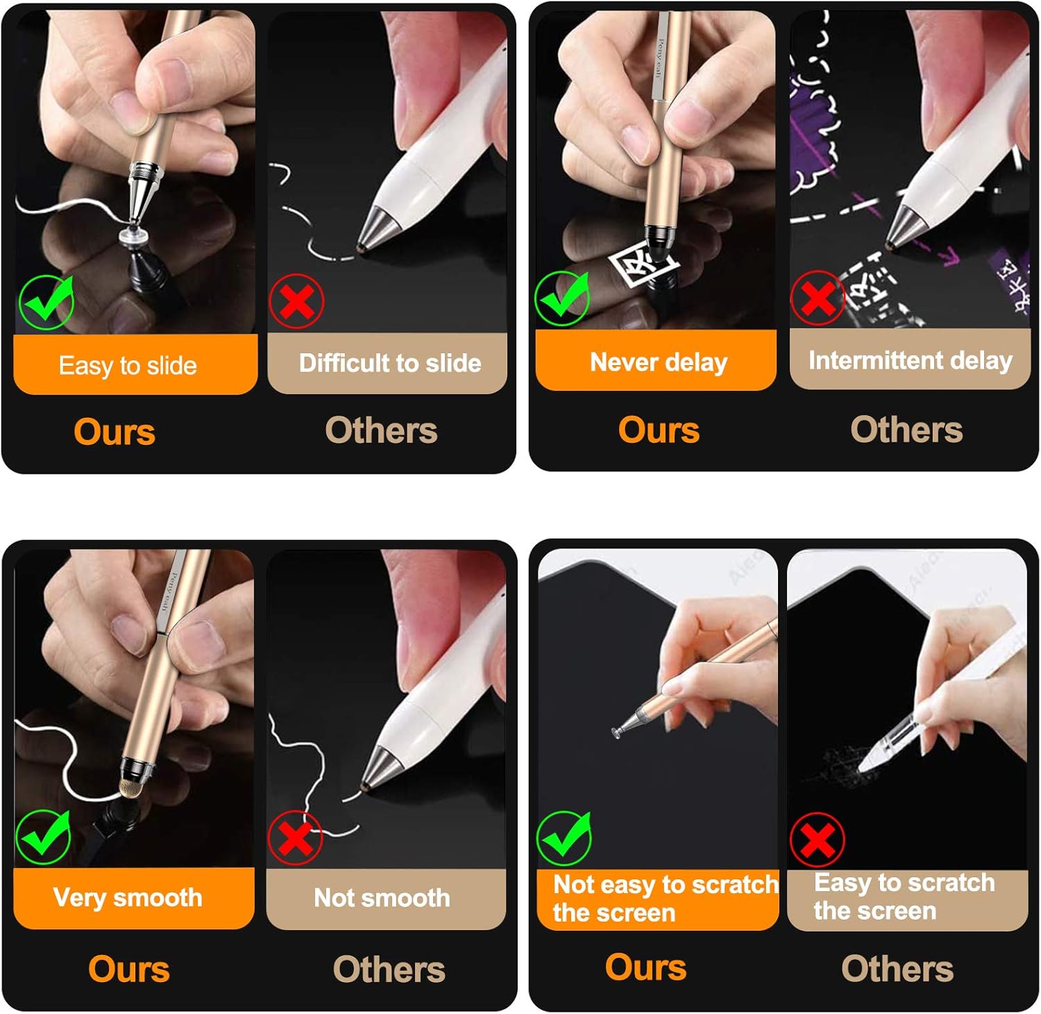 - ✔【BRANDED NEW DESIGN & DIY】 -- The tablet pens for touch screen is made of high grade copper material, NOT aluminum alloy, handy comfortable feeling, solid, durable and corrosion resistance. The design is adapted humanized one. You can DIY various combinations, disassemble at you will which gives you more accurate pen writing/drawing/touching experience.
