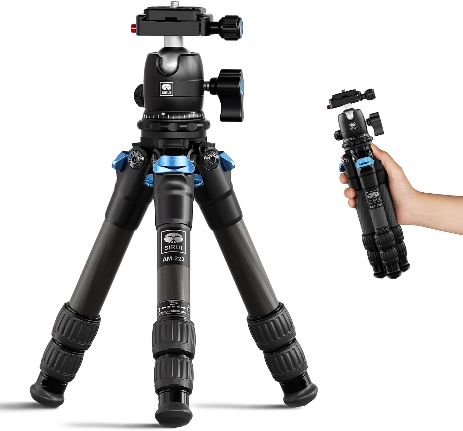 - Durable Carbon Fiber: Manufactured with premium carbon fiber, SIRUI M-223 tripod kit is lightweight, sturdy and durable, and can support up to a 15kg/33.1lbs load.