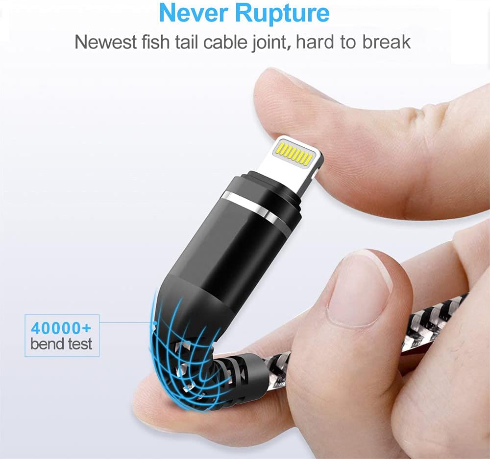 - ăSuper Durable iPhone CableăNewest fish tail joint design has over 40,000 bending tests. The solid and durable two-shade braided armor nylon shield gives the cable stronger protection and flexible performance than others and no need to worry about tangling, effectively prolong the service life.