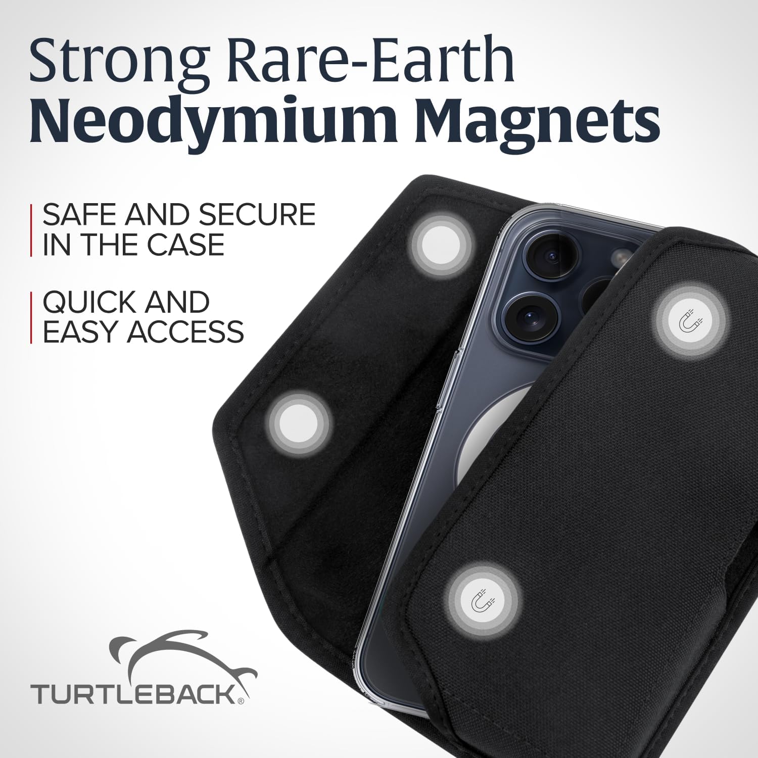 Turtleback Belt Clip for iPhone 16 Pro, 16e, 15 pro 14 Pro 13 Pro -Small- Fits w/Slim MagSafe Style Cases - Premium Black Nylon, Horizontal Belt Holder, Magnetic Closure, HD Rotating Belt Clip