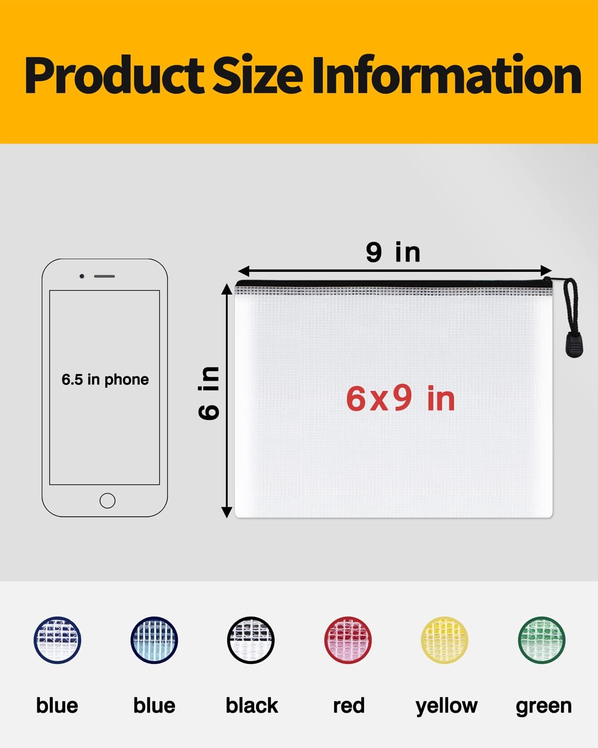 SUNEE Mesh Zipper Pouch 6x9 in (10 Colors, 30 Packs), Mesh Bags with Zipper for School Office Supplies, Puzzles & Games, Travel Accessories, Waterproof Zipper Pouches for Organizing