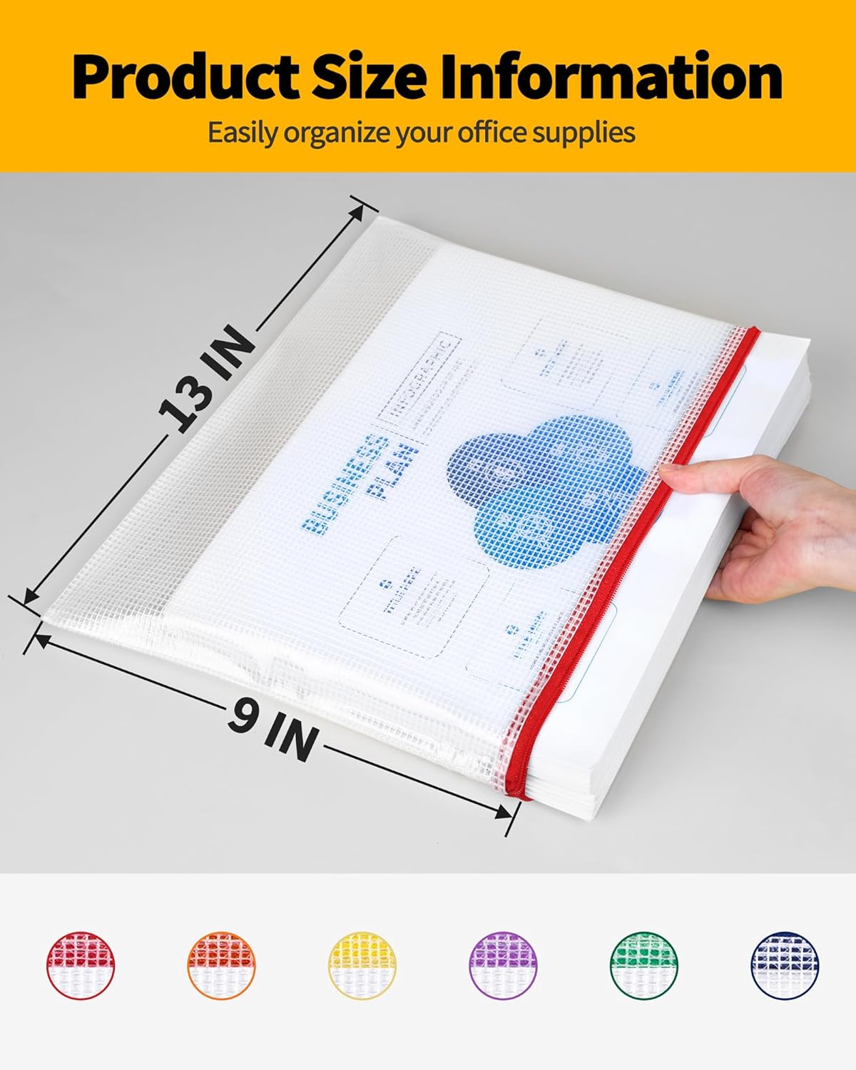 - PACKAGE CONTAINS: You will get a set of 12 Packs 9x13 inches colorful plastic zipper pouches for the most paper size of letter-size prints or smaller document storage. It can help you organize your miscellaneous items to meet your daily life and work. Manufacturer recommended age 3 years and up