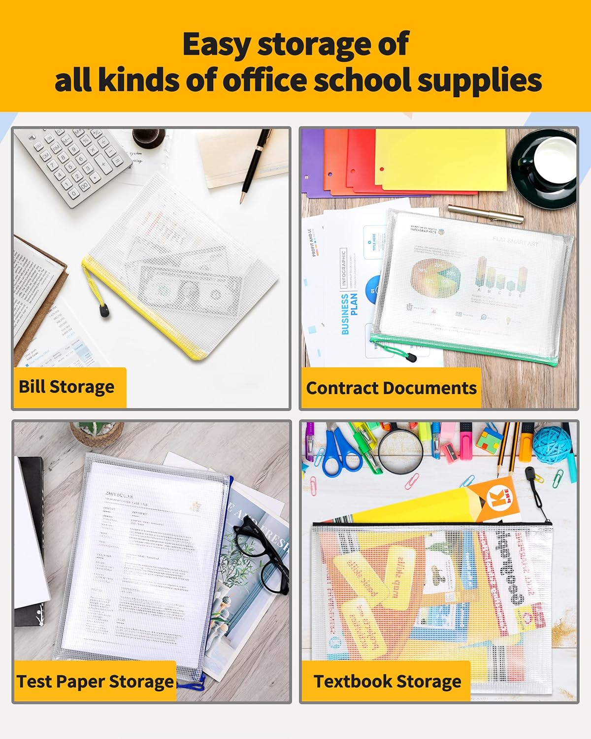 - DURABLE & PORTABLE: SUNEE zipper file bags are made of thick vinyl material, water-resistant, moisture-resistant. Each metal zipper is equipped with a rope loop, which is strong and durable. It can be used as a hanging ring and ready to hang.