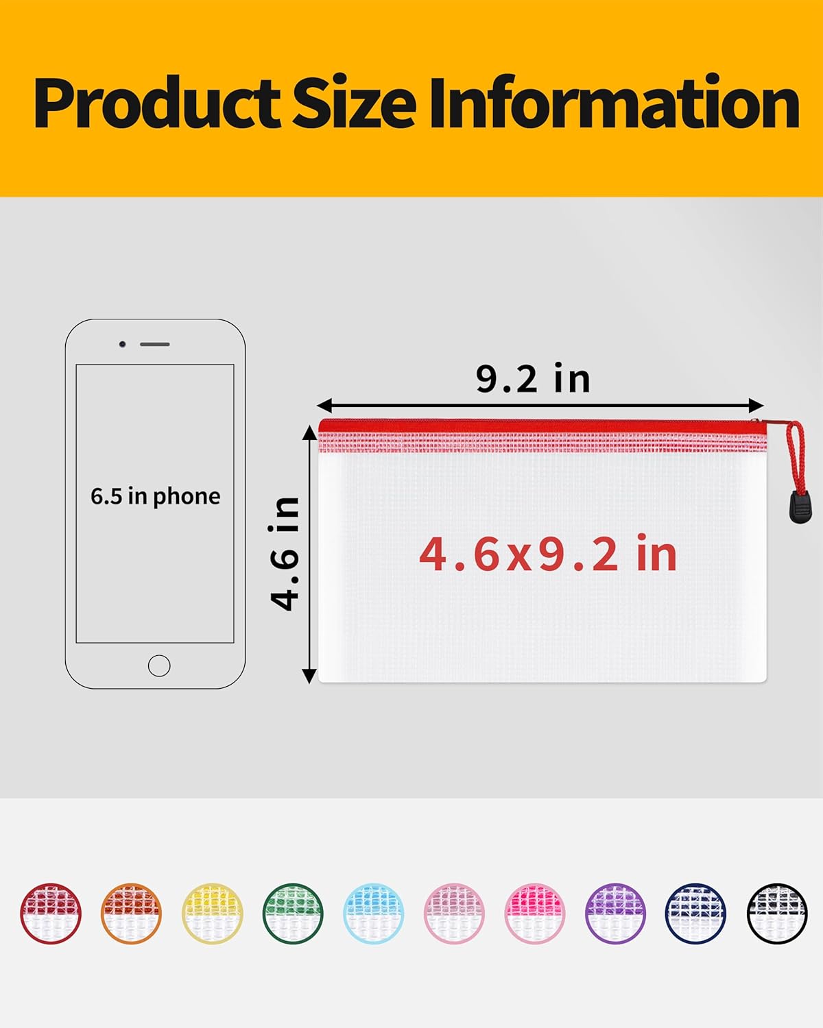 SUNEE Mesh Zipper Pouch 4.6x9.2in (10 Colors, 30 Packs), Mesh Bags with Zipper for School Office Supplies, Travel Accessories, Waterproof Zipper Pouches for Organizing