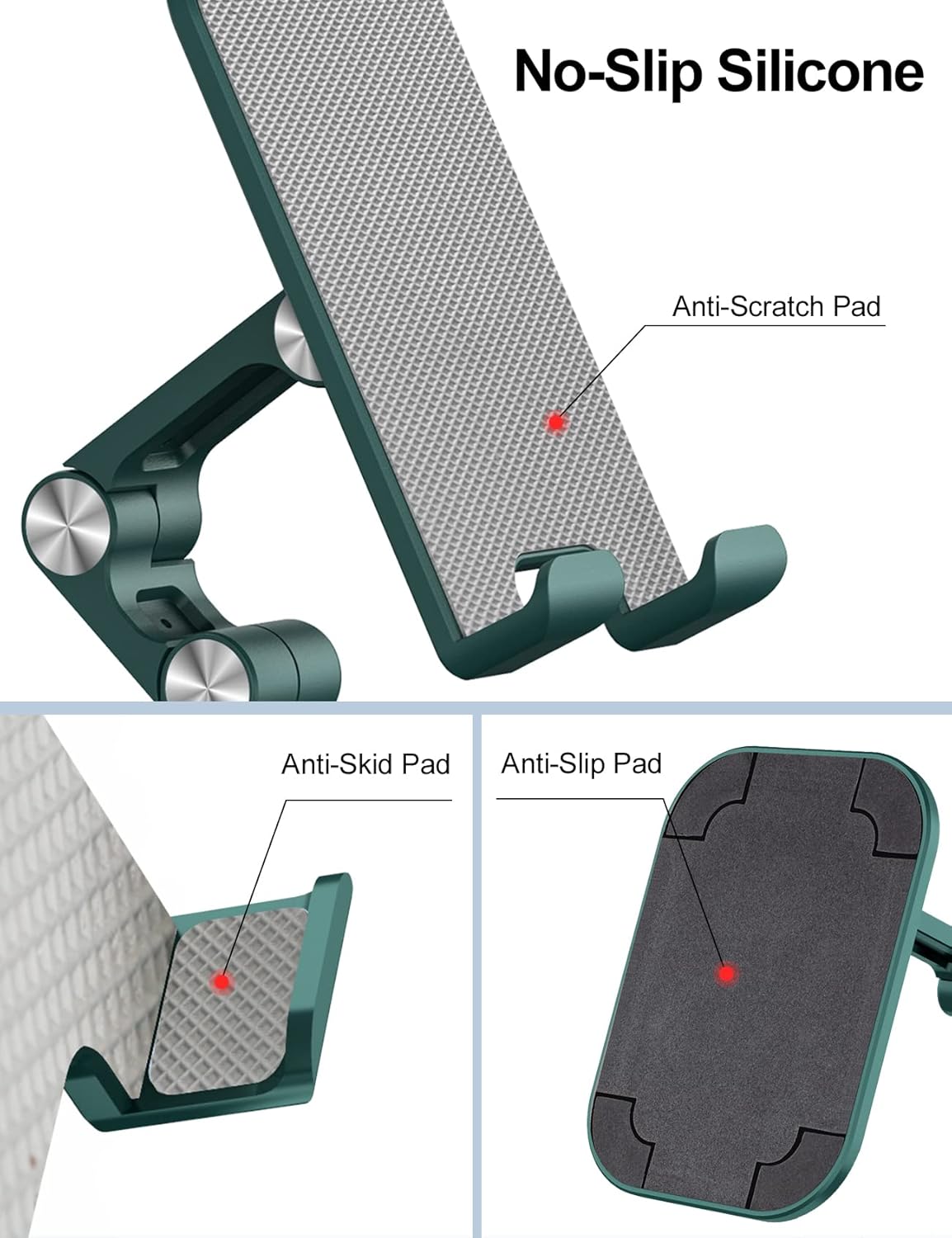 - Super Sturdy & Fully Protective Silicone Pad - OCYCLONE Desk phone stand with premium Aluminum + ABS material makes it more durable than others. Quality non-skid rubber covered on the front and the bottom can mamximum protect your phone from slide and scratches.You can easily tap the screen without worrying the phone will tip over or fall off
