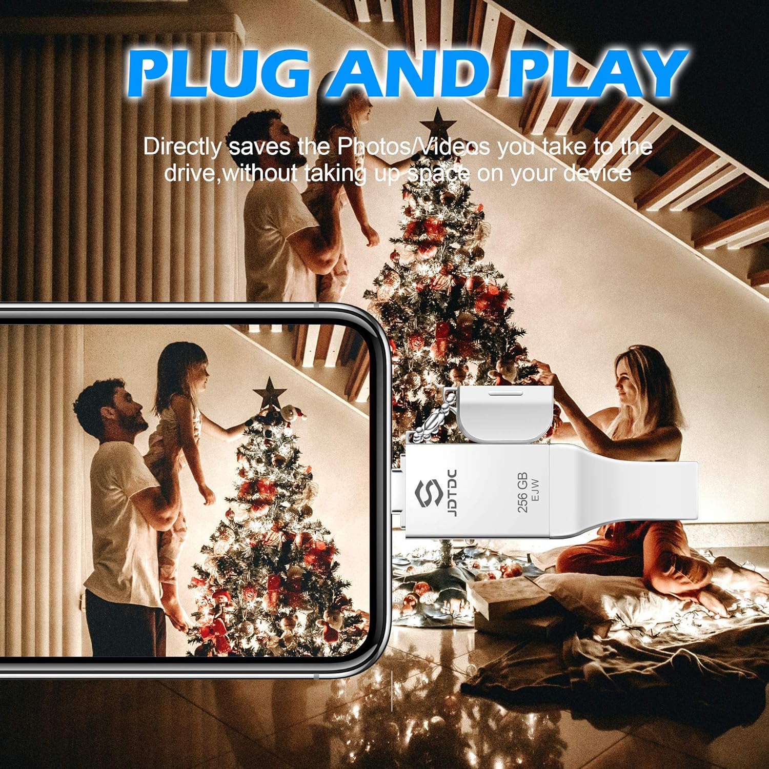- 3-in-1 Functionality Apple MFi Certified iPhone Photo Stick: Approved by MFi. JSL JDTDC 256GB iPhone Photo Stick equipped with an Apple MFi-Certified Lightning Port, USB-C Port and USB-A Port for wide compatibility, seamlessly moves files across iPhone, iPad, Android Type-C phone, MacBook and Windows computers.3 Ports to free up your iPhone and iPad space and data. Apple MFi Certified Photo stick for iPhone.