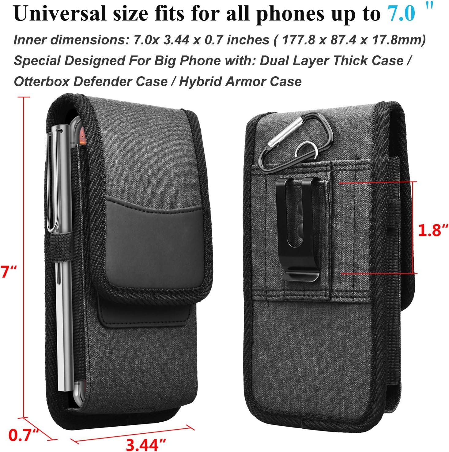 - ✦Inner Dimensions: Length: 7.0" X Width: 3.44" X Thickness: 1.0", Compatible with iPhone 17 Pro Max 17 Pro 17 Air 16 Pro Max 15 Pro Max 15 Pro 15 Plus 15 14 Pro Max 14 Pro 14 Plus 14 13 Pro Max 13 Pro 13 Mini 12 Pro Max 12 Mini 11 Pro Max XS Max XR, Samsung Galaxy S25 Ultra S25 Plus S25 S24 Ultra S24 Plus S24 S23 S22 S21 S20 S10E S10 Plus S9 Note 20 Ultra Note 10 Note 9 Note 8 With Dual Layer Thick Case/Otterbox Defender Case/Hybrid Armor Case/Lifeproof Case/Battery Case on.