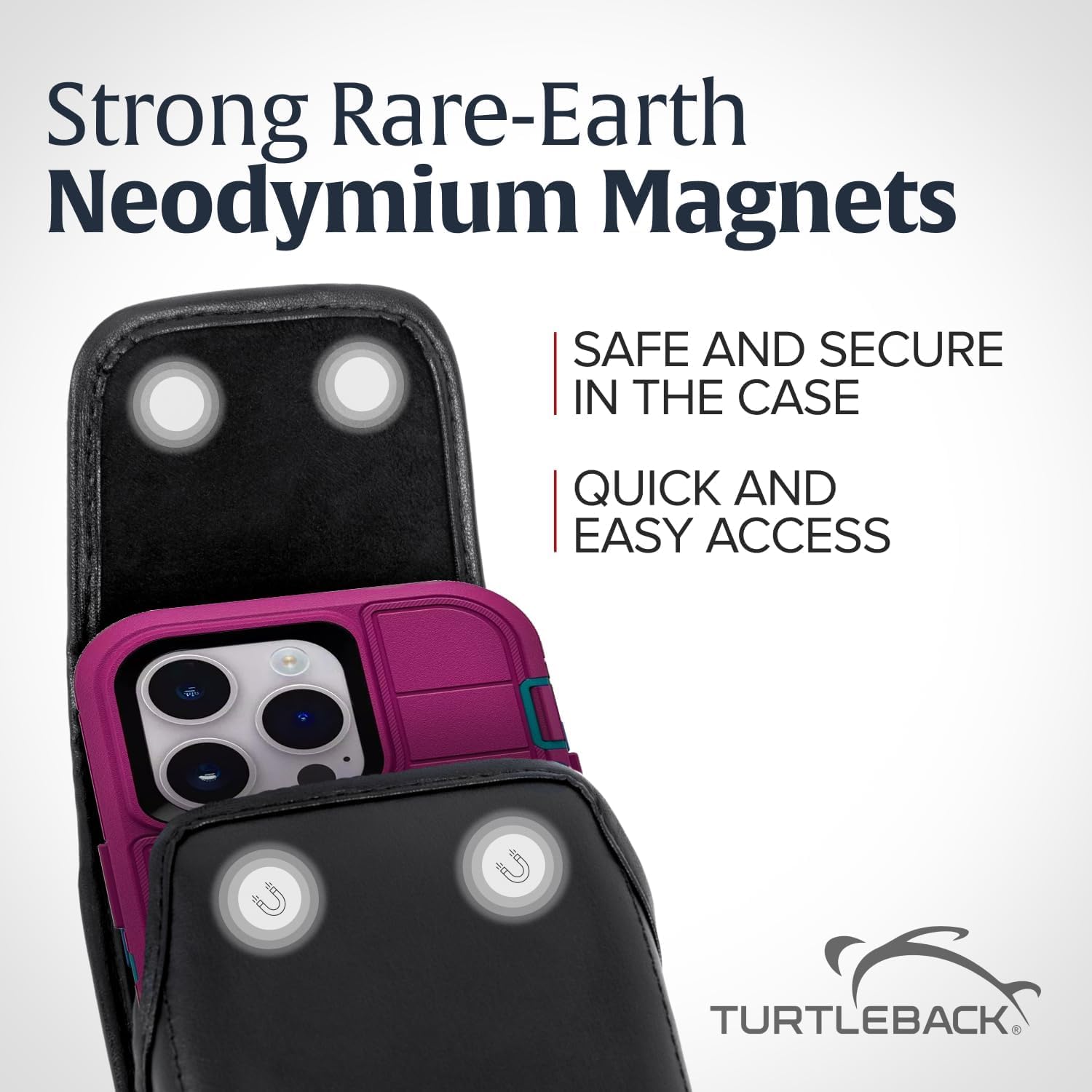 Turtleback Belt Holder for iPhone 16 Pro Max, 15 Pro Max, 14 Pro Max -Large- Fits w/Defender Bulky Style Cases, Premium Black Leather Vertical Holster, Magnetic Closure Leather Wrapped Clip