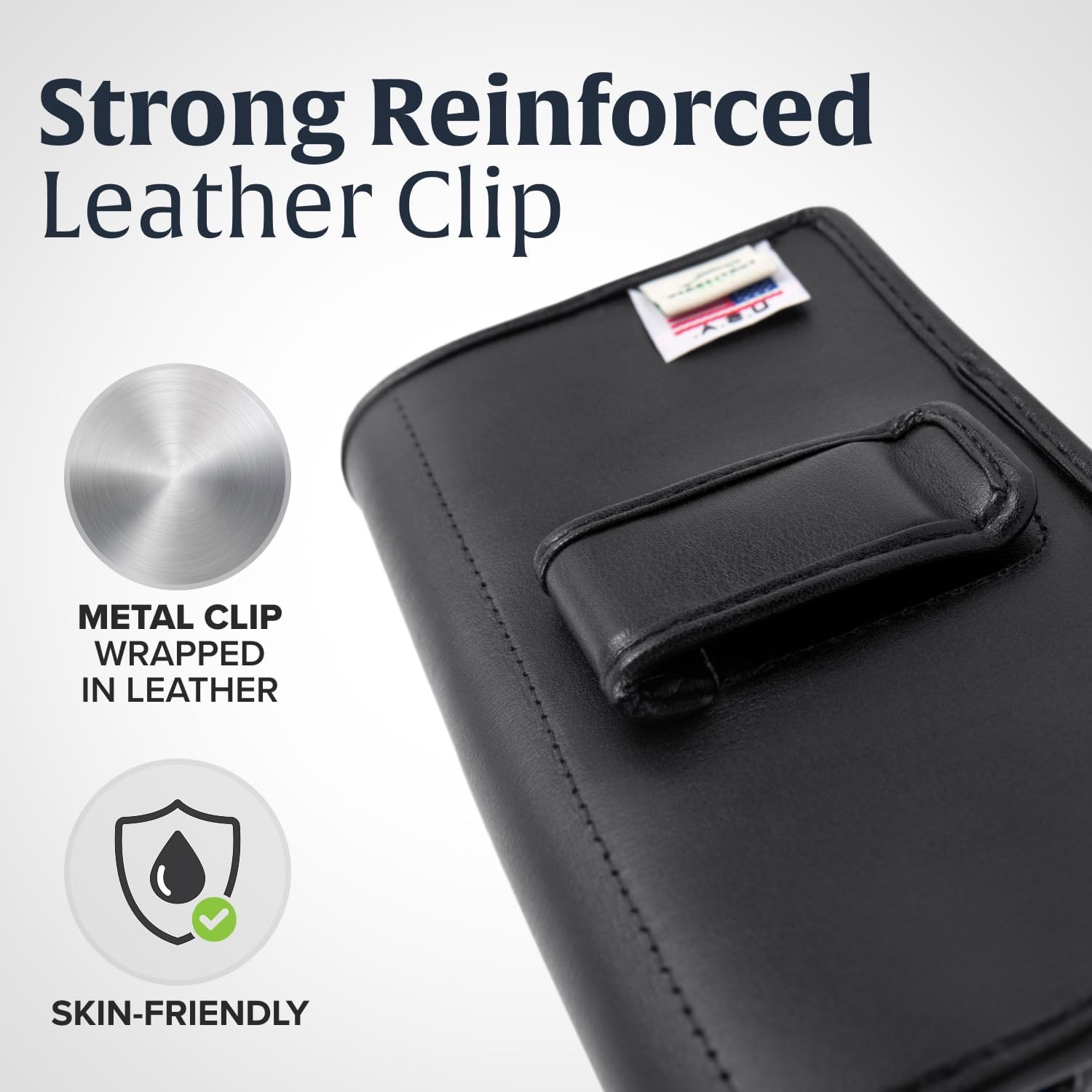 Turtleback Belt Holder for iPhone 16 Pro Max, 15 Pro Max, 14 Pro Max -Large- Fits w/Defender Bulky Style Cases, Premium Black Leather, Horizontal Case, Magnetic Close, Leather Wrapped Belt Clip