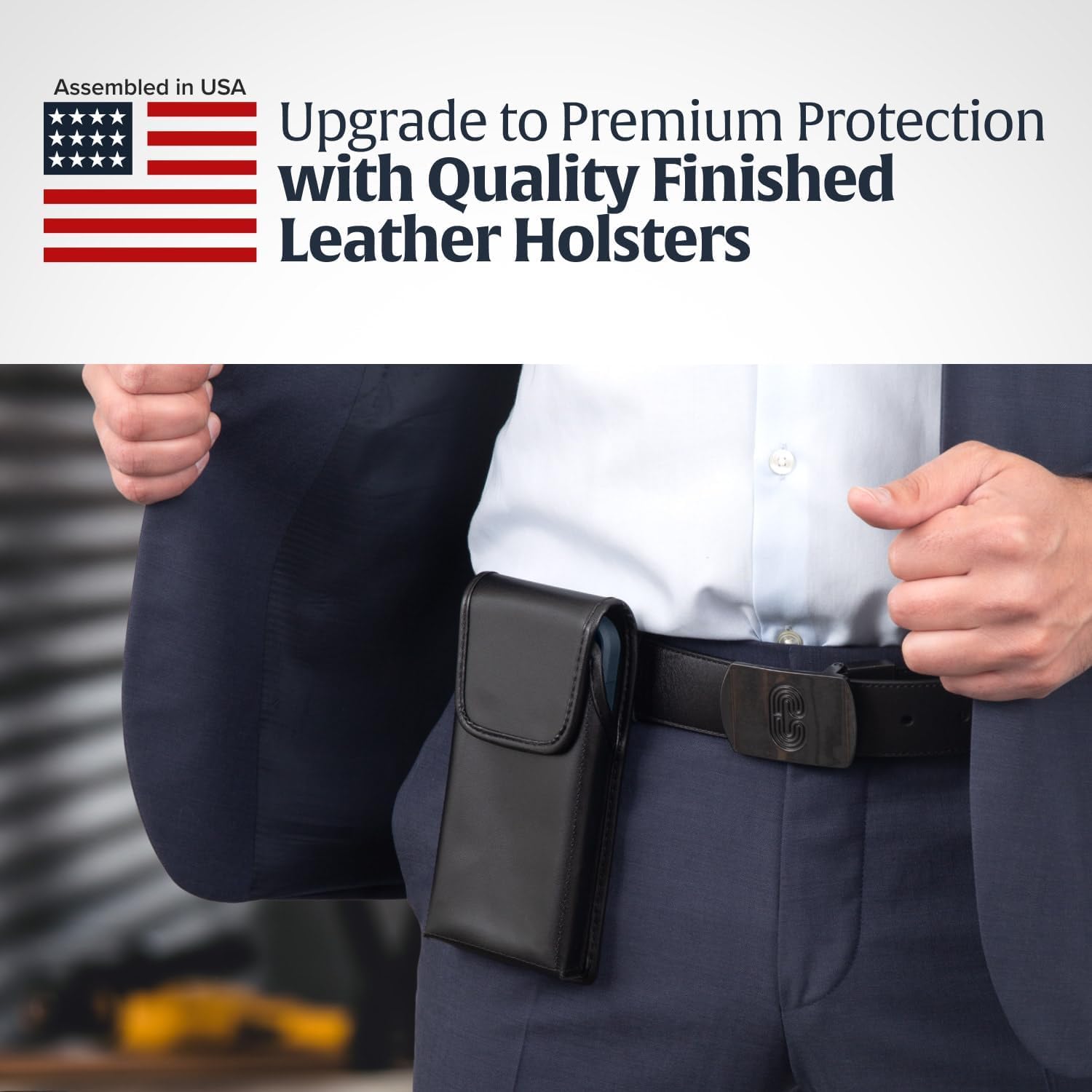 - SPECIALLY DESIGNED FOR IPHONES: This premium phone belt holder fits iPhone 16 Pro Max, 15 Pro Max, 14 Pro Max, 13 Pro Max, 16 Plus, 15, 14, 13 Plus. It accommodates iPhones with a Defender Bulky Style or Size Case. With interior dimensions of 6.78 x 3.53 x 0.72 inches, this stylish iPhone belt holder is a durable cell phone pouch and reliable men's belt clip.