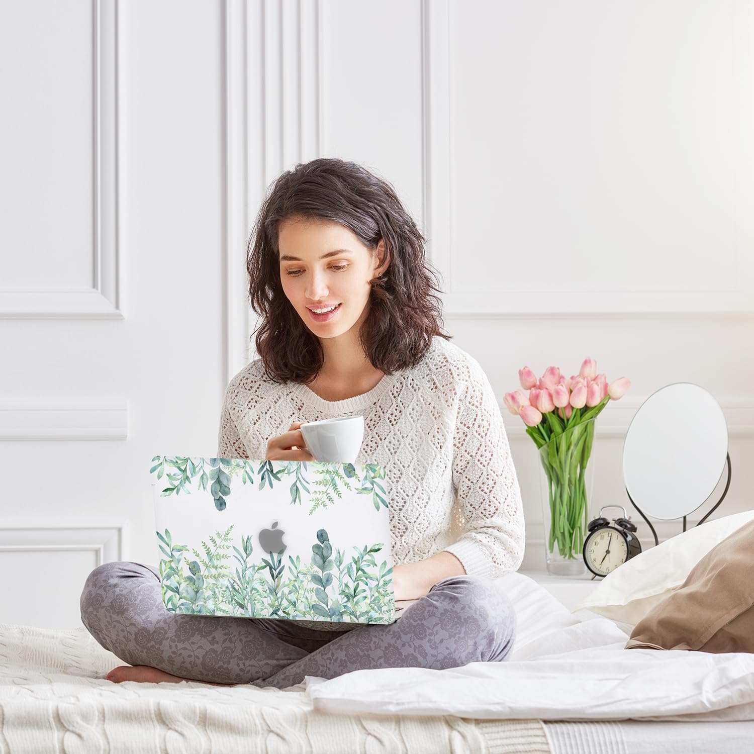 Case for MacBook Pro 13 inch M2 M1 A2338 A2289 A2251 A2159 A1989 A1706 2023-2016 Release with Touch ID, 6 in 1 Matte Clear Shell&Keyboard Cover&Screen Protector&Webcam Cover, Green Plants