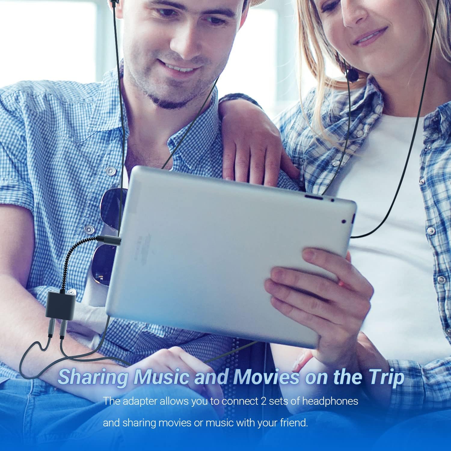 - [Headphone Sharing Splitter] β Cubilux Lightning to Dual 3.5mm Audio Jack Adapter splits the audio signal between 2 different headphone sets, and lets you share movies, music or games with your friend without disturbing other people around you, for instance, when traveling by an airplane.