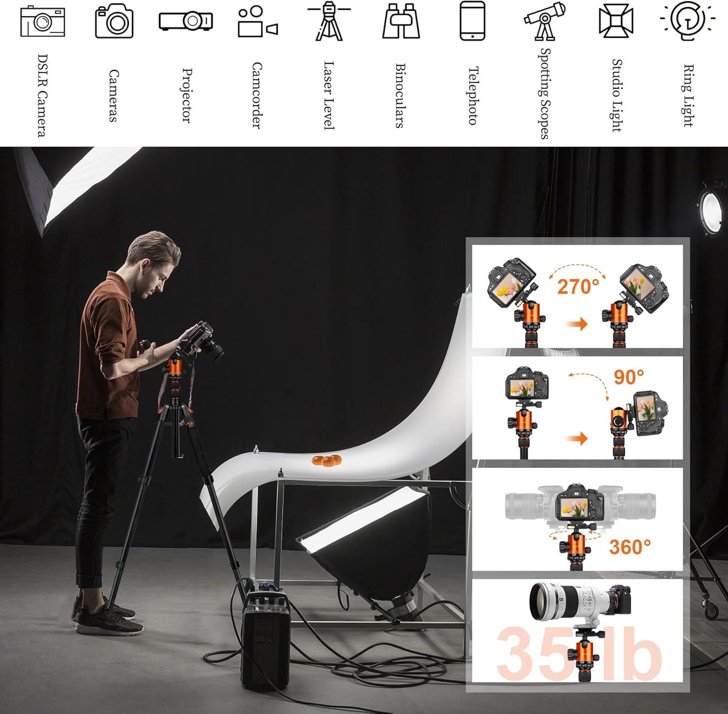 - Special Feature : adjustable tripod, camera tripods & monopods, heavy duty tripod, tall tripod, travel tripod