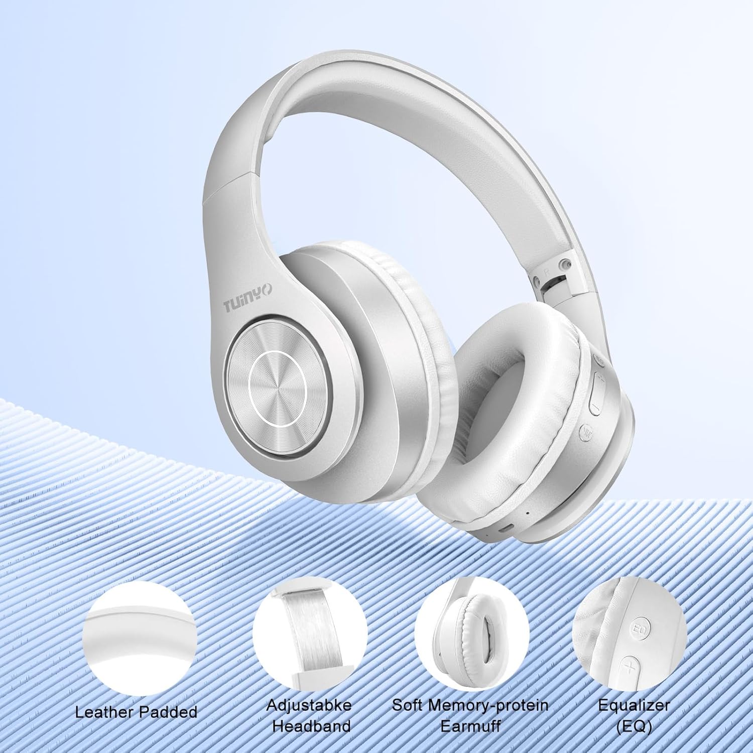 TUINYO Bluetooth Headphones Wireless, Over Ear Stereo Wireless Headset 40H Playtime with deep bass, Soft Memory-Protein Earmuffs, Built-in Mic Wired Mode PC/Cell Phones/TV-White … …