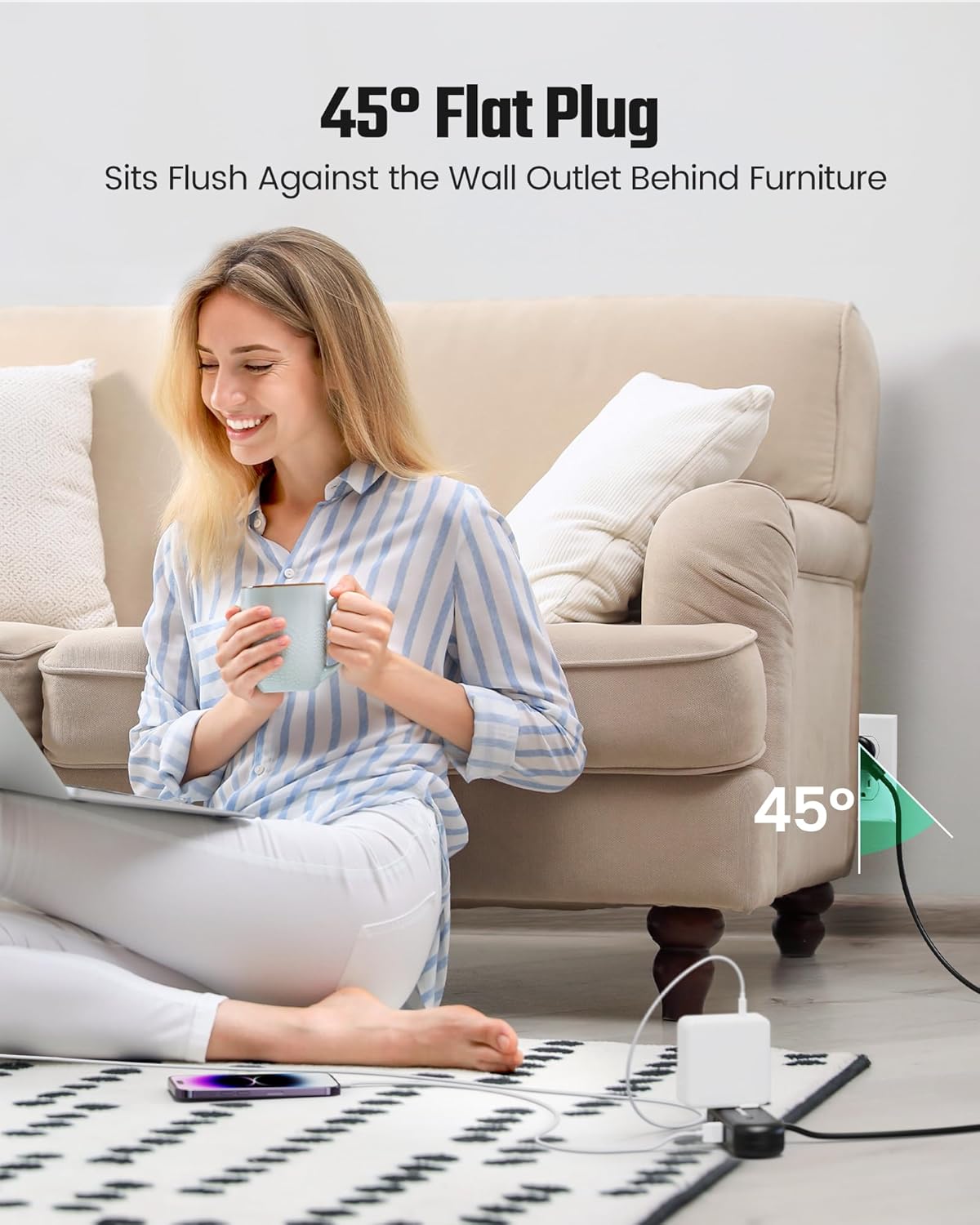 - 【No-Blocking Design】Designed with a good distance between 2 outlets (1.9 inches), they are spaced enough to fit the bulky cell phone chargers or power adapters without blocking each other.