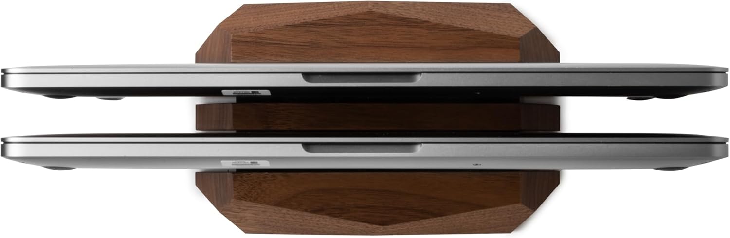 - Design Geometry with Natural Materials: Crafted with solid walnut and oak wood on a stainless-steel base, the Dual Laptop Dock combines aesthetics with functionality. Our ground-breaking wood shaping technology enhances natural grains, creating a sturdy, compact, and visually lightweight, and appealing geometric block.
